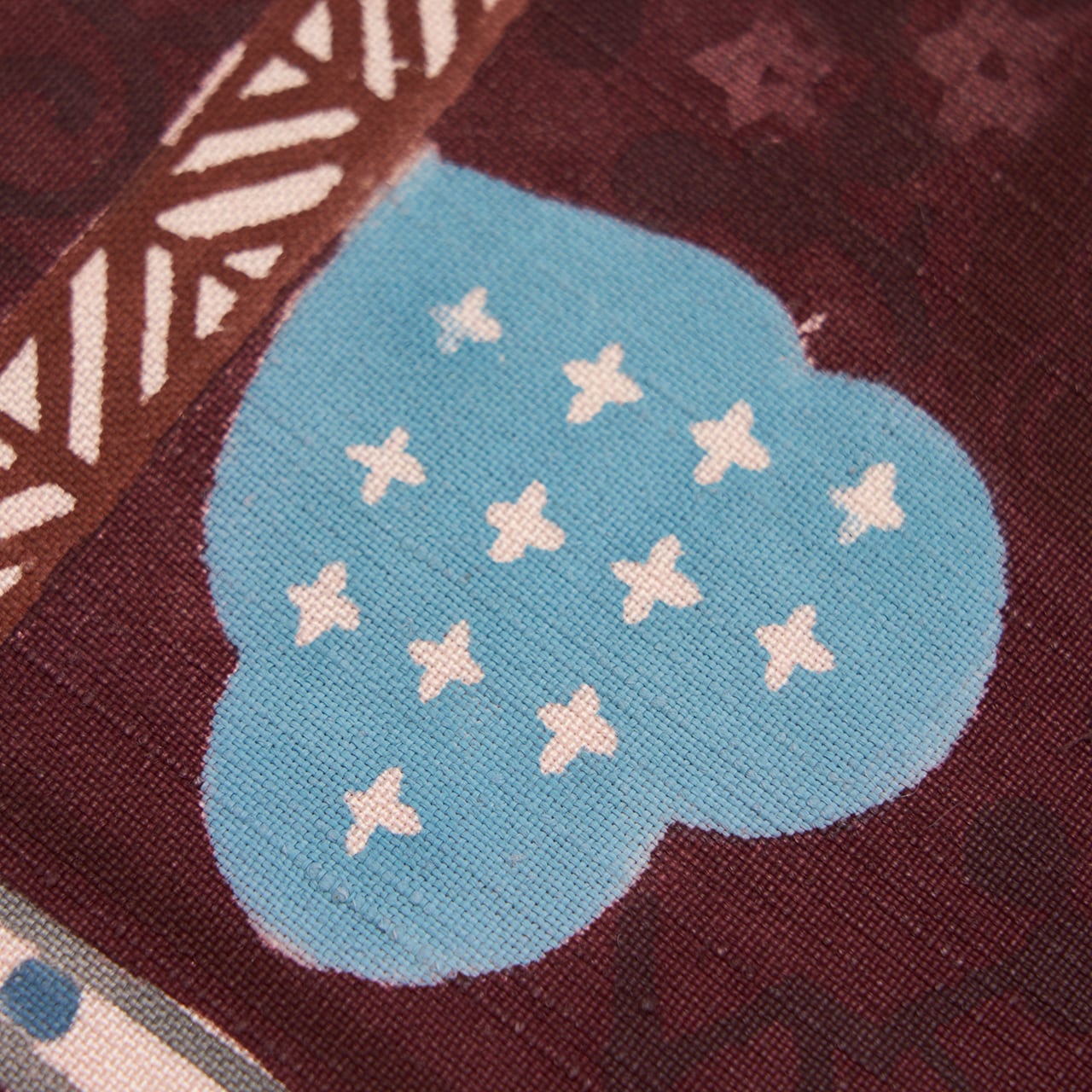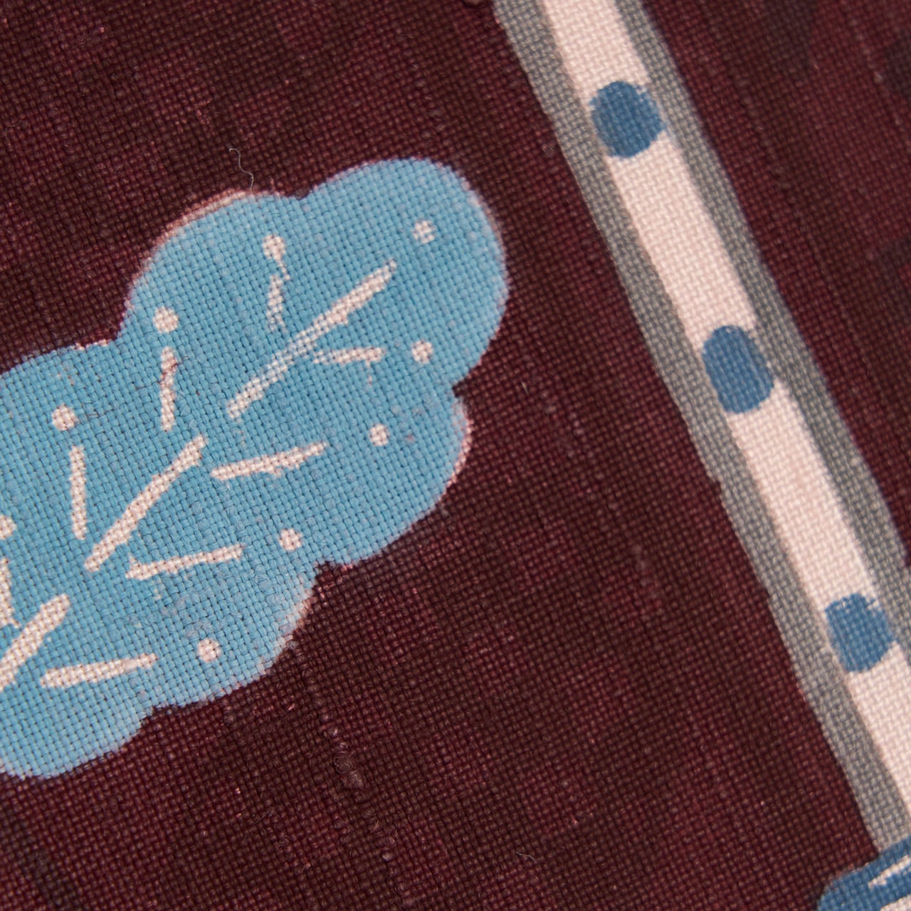 型絵染ならではの素朴さのあるデザインに、センスの良い色のチョイスと顔料の特徴を活かして、大人の着こなしにマッチしたお洒落な帯となっているように感じます。