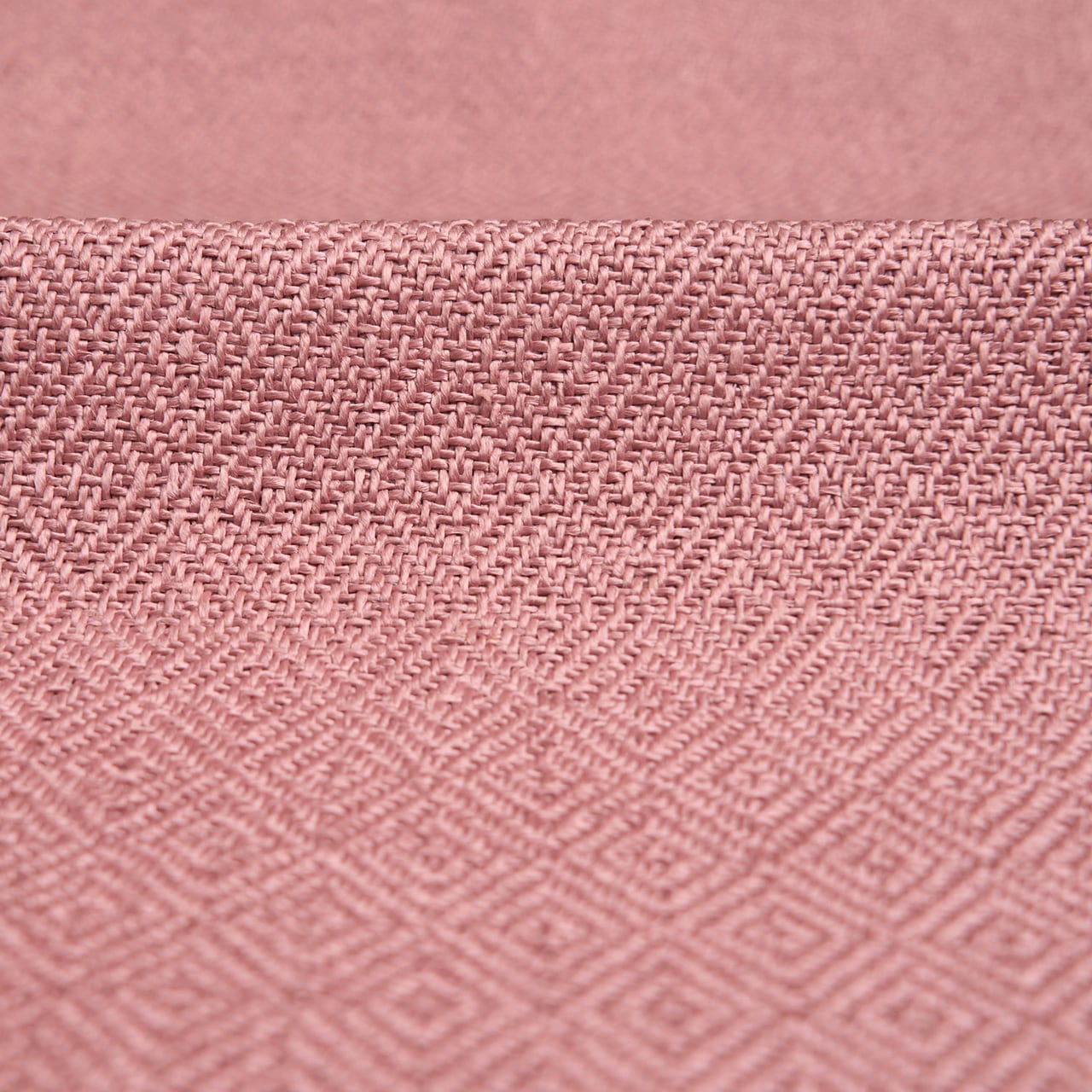 こちらも少しだけ青味の感じられるクリアなピンク・退紅色の糸が綺麗な光沢を放っていて、入子菱の模様が連続して織り出され、ざざんざ織ならではの端正な手織りの味わいに満ちています。