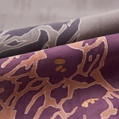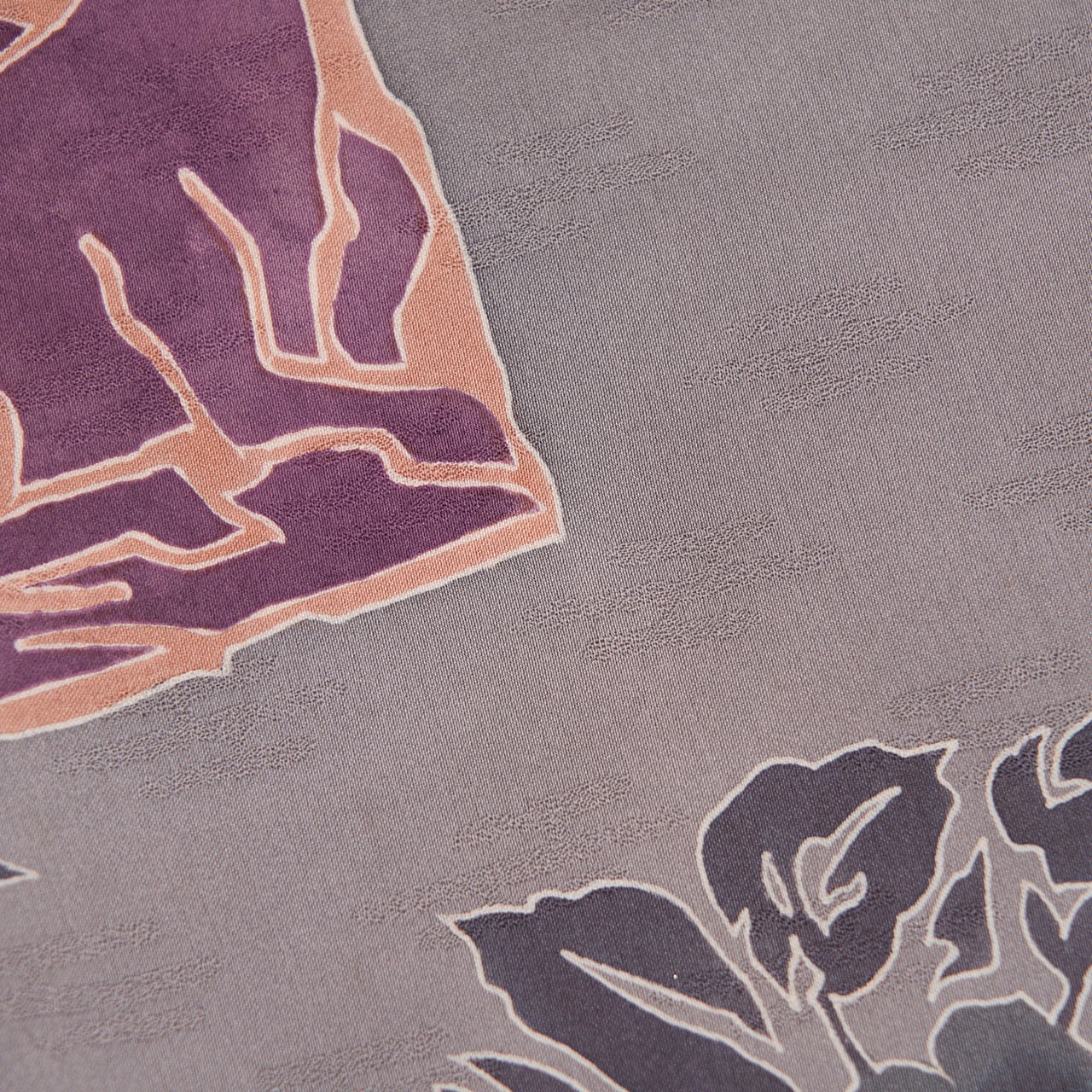 紫の濃淡で染められていますが、濃鼠色の方の模様は、貝紫で染められた模様を引き立てるようにシルエットのように置かれていて、貝紫色の花うさぎの模様が輝くようにはっきりとその存在を表しています。