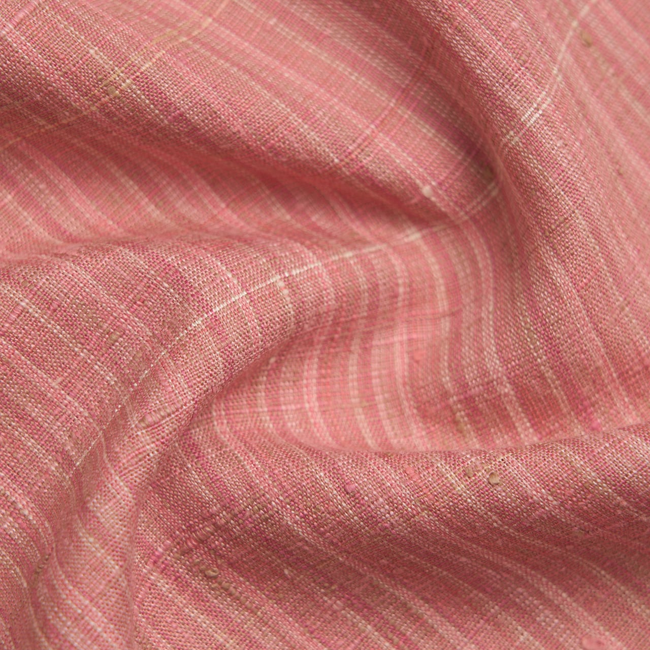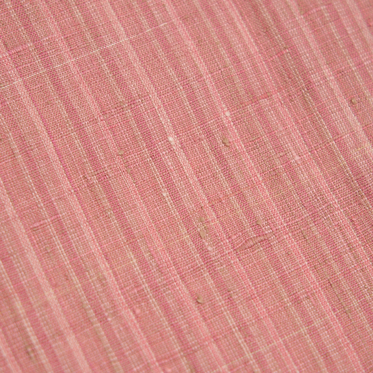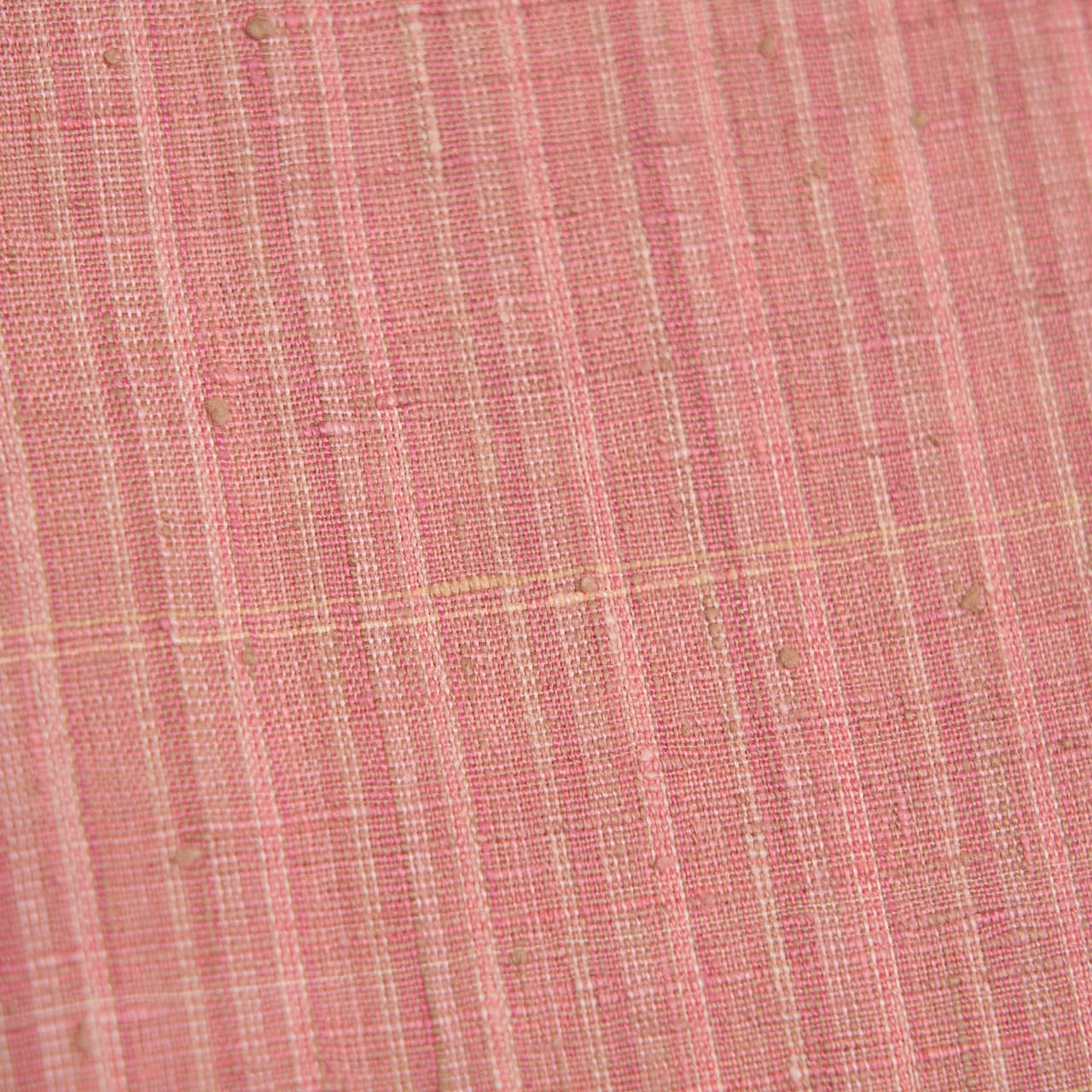 紅花で染められた濃淡のピンクと、象牙色の糸、グレー味のあるベージュの糸などで素敵な縞模様が織られた素敵なお着物です。