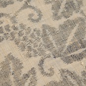 白汚しのような淡いグレーベージュ・灰白色の地に、墨色の大ぶりな葡萄の模様が織り出されたお洒落な作品です。
