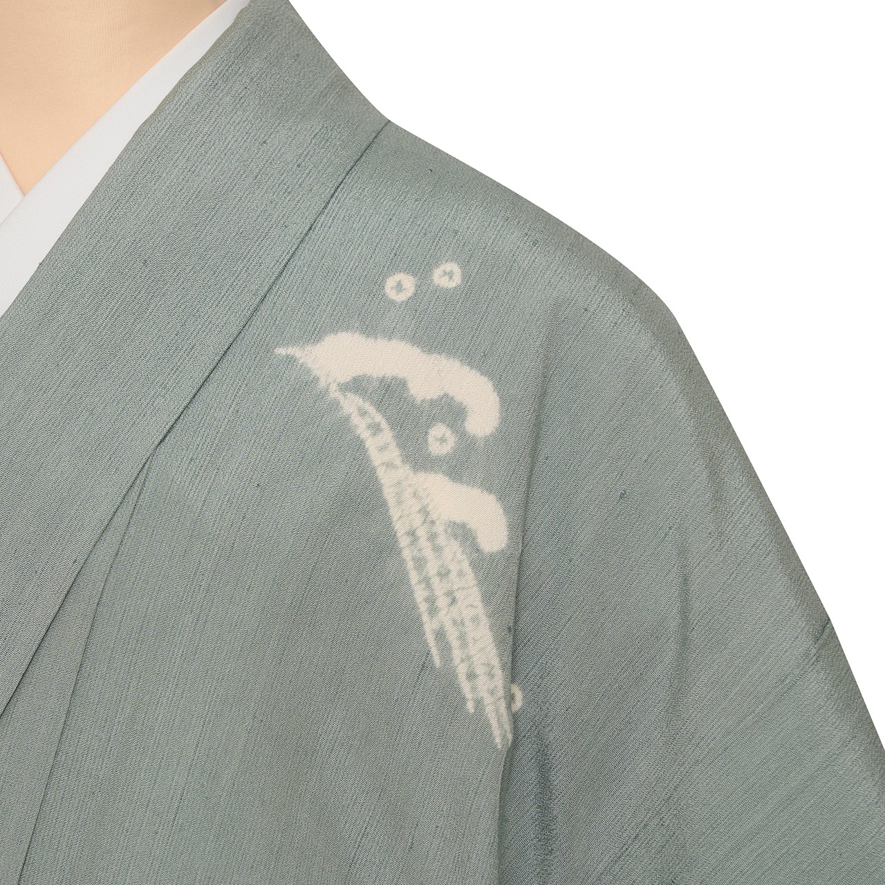 染め抜かれた白がとても清々しく、清潔感が感じられるような爽やかで気品の溢れる素晴らしいお着物となっています。