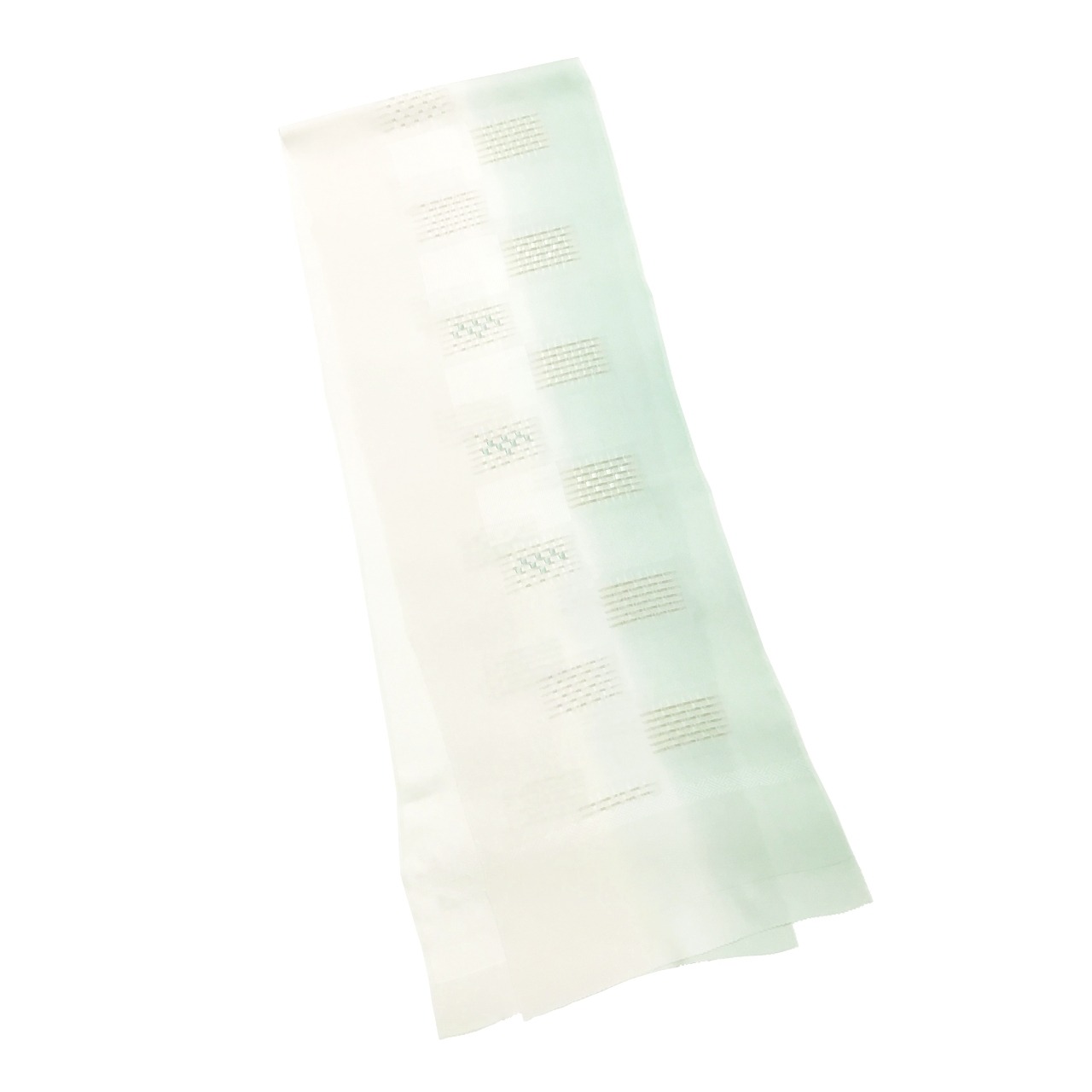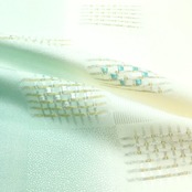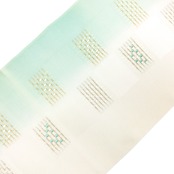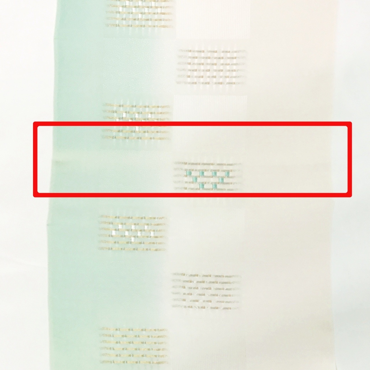 青磁色の方には撒糊模様のような地紋、生成り色の方には縞模様のような地紋が織りで表現されており、光の反射を抑え、品格のある素敵な帯揚げとなっております。