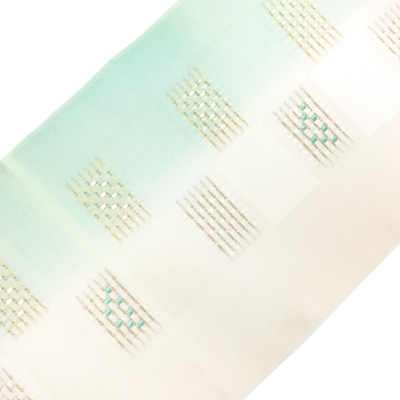 また、格子模様は金糸と銀糸の刺繍で、一部は新橋色と白色で華やかさを添えています。