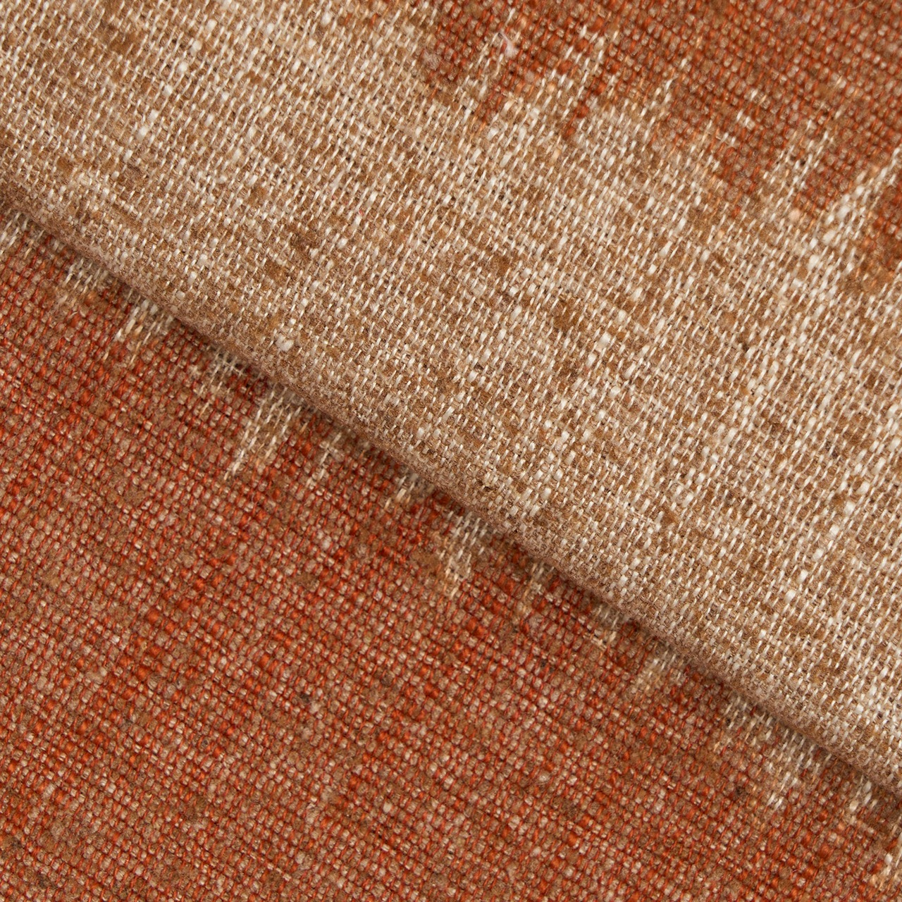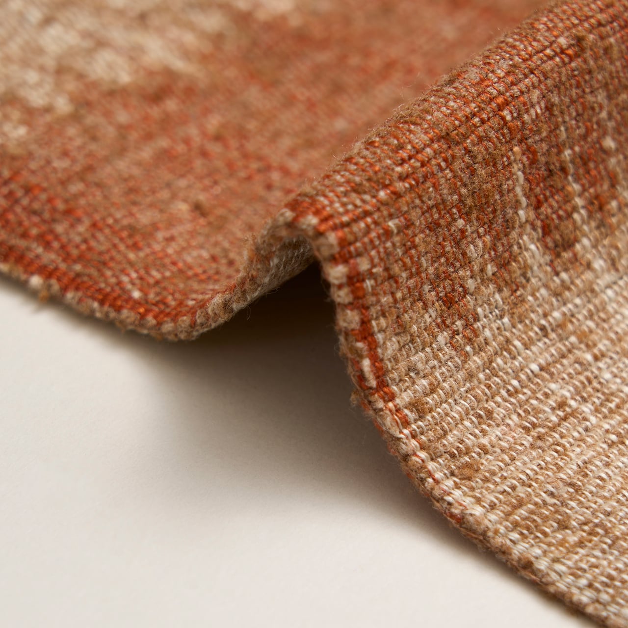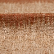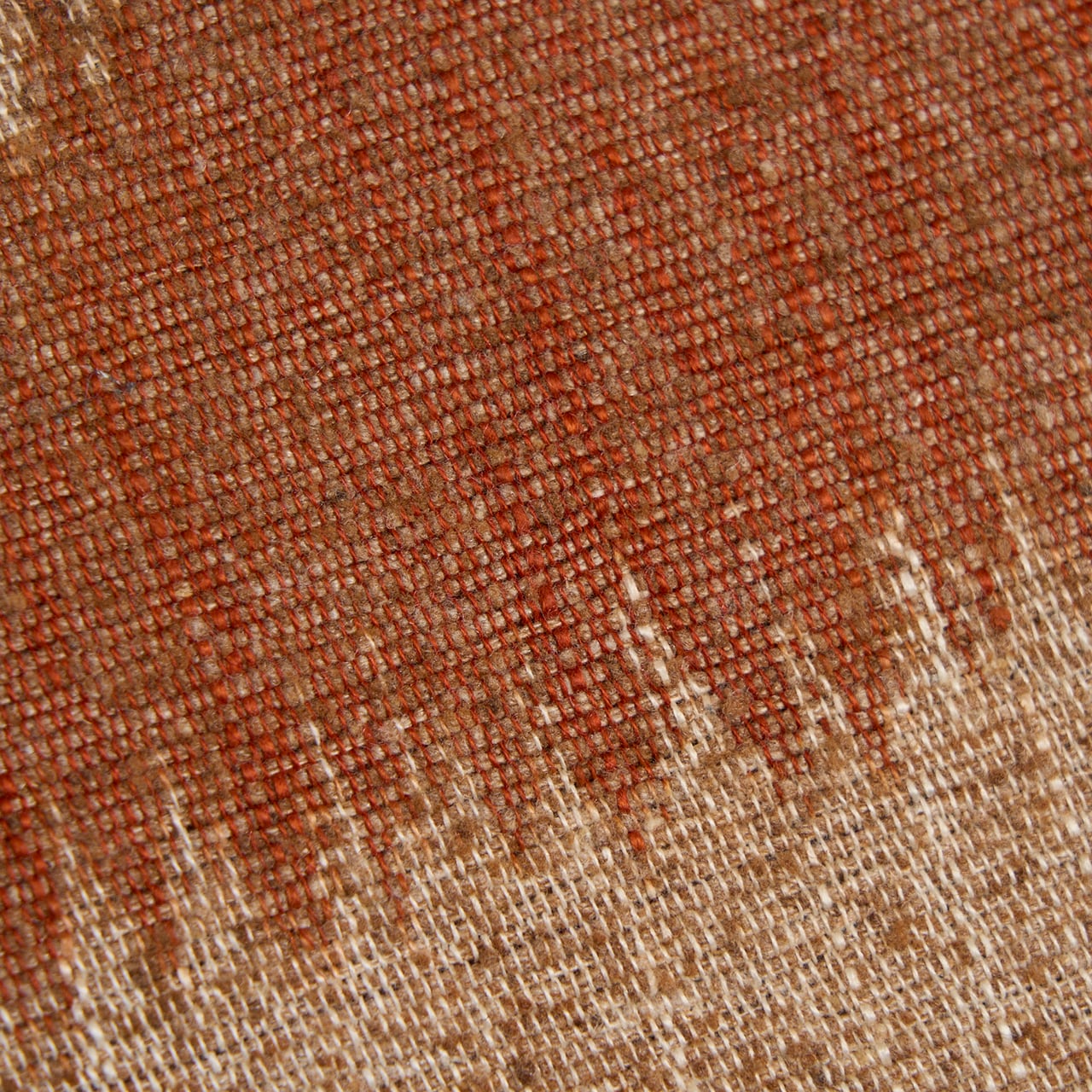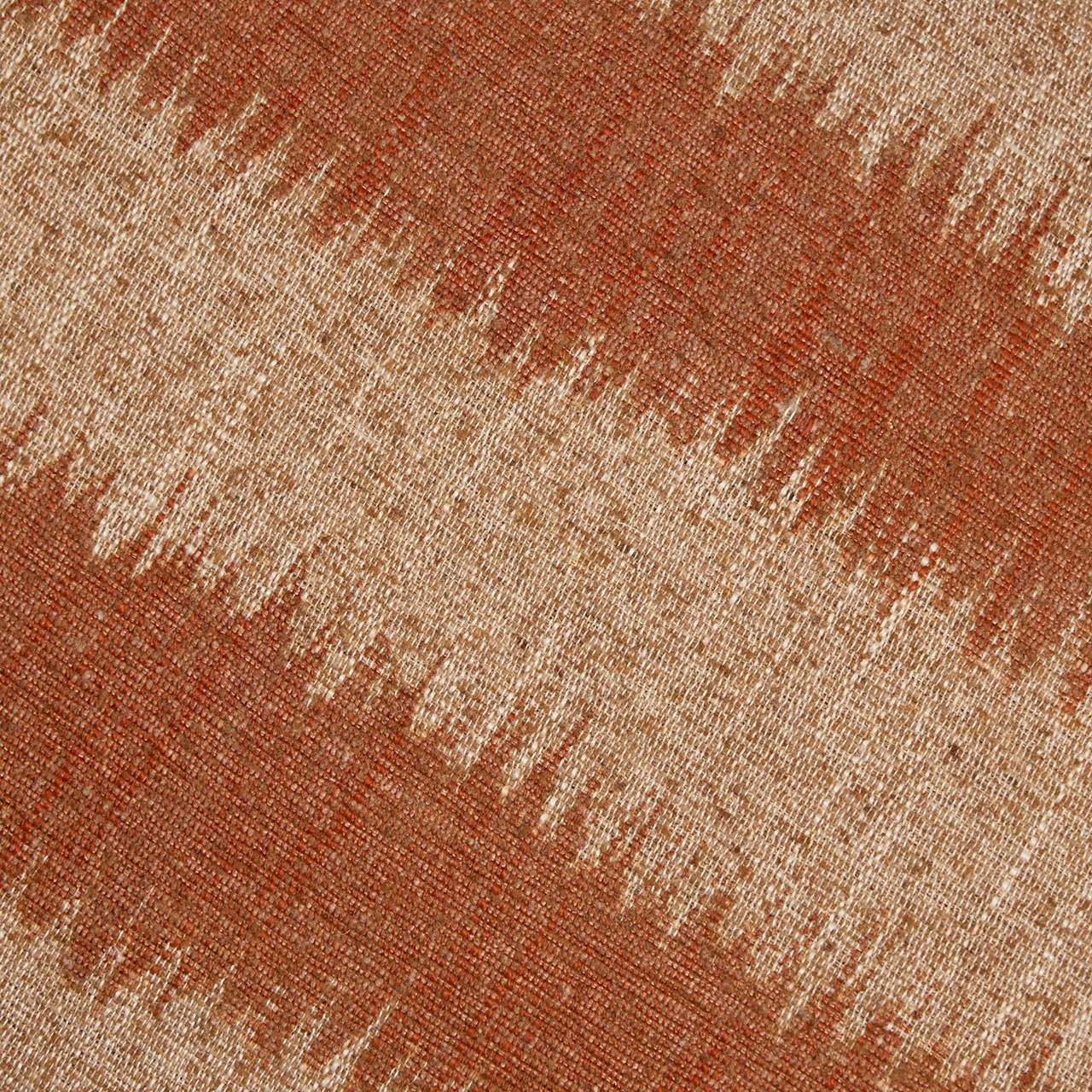 こちらはたっぷりとぜんまいの綿が織り込まれた亜麻色の地に、茜のような草木で染められた柿渋色の段が取られ、その縦の絣足の表情にも味わいのある、素敵な八寸名古屋帯です。