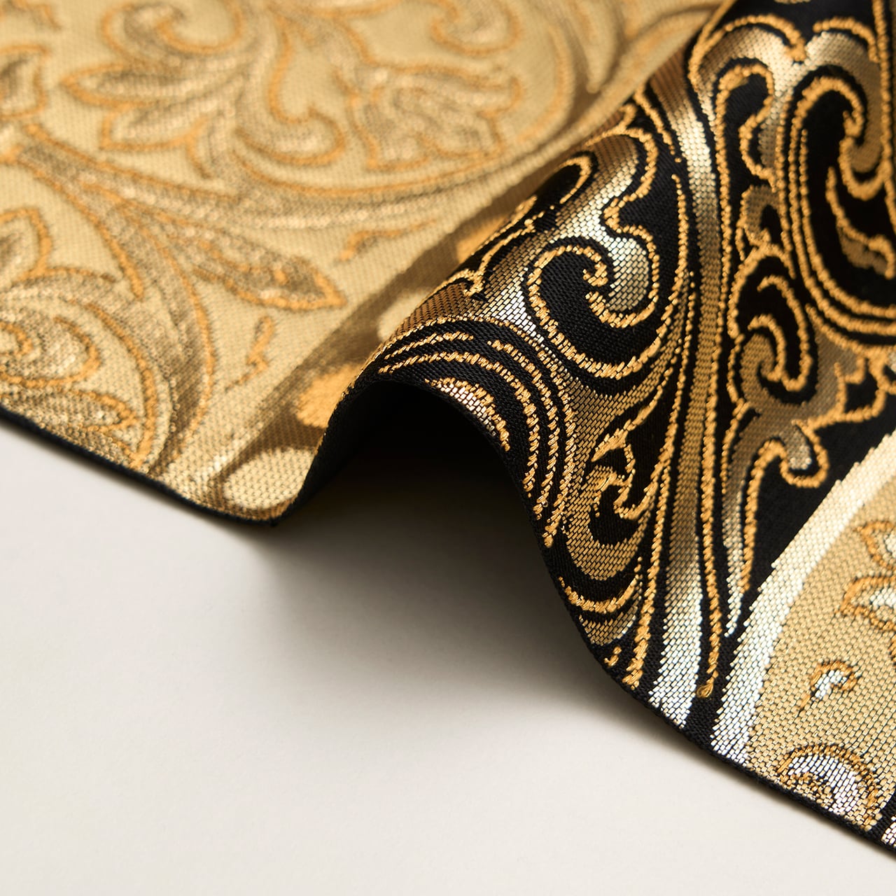 どこかオリエンタルな雰囲気も持っていて、西方の金の工芸品を思わせるような、ゴージャスで気品の感じられる、素晴らしく存在感のある帯となっています。
