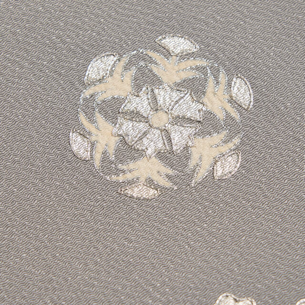 銀箔を摺り込んで定着させるのは、とても技術を要することですが、これほど込み入った複雑な模様を染められるのはさらに大変なことてわ、おそらく熟練の職人さんの手によるものではないかと思います。