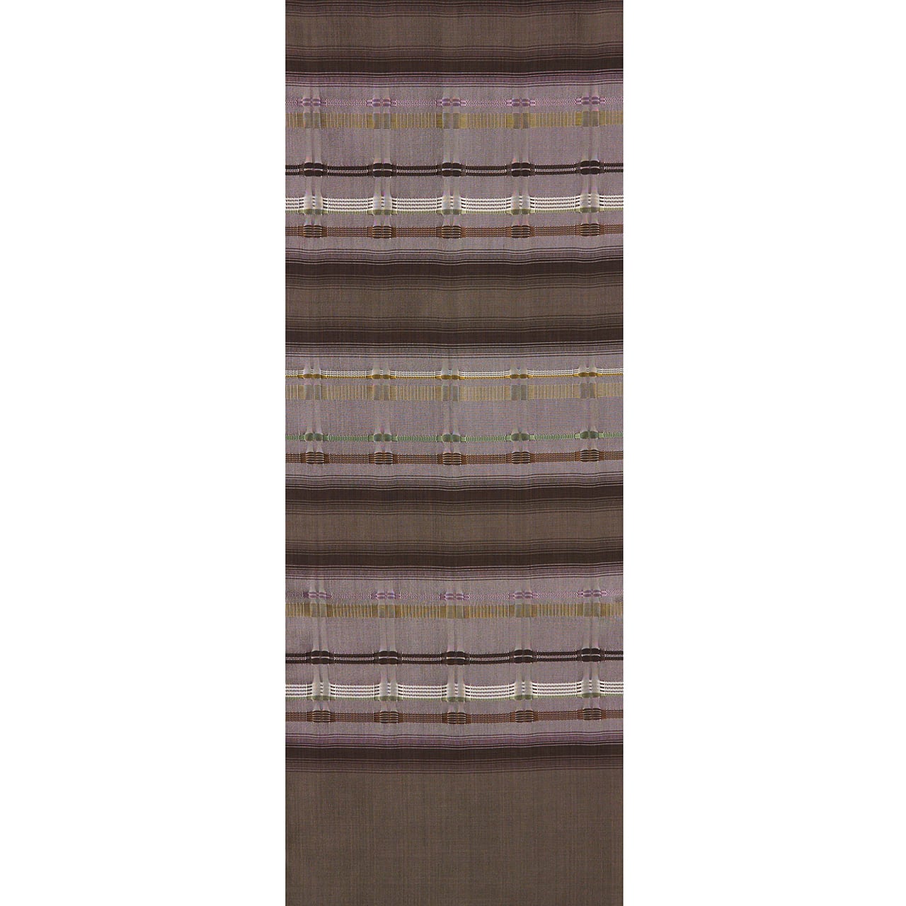 草木染による洗練された色使いと、繊細な糸を巧みに使いこなし、香り立つような美しい布を織り続け、多くのファンを魅了する、藤山千春さんの吉野間道の九寸名古屋帯をご紹介させていただきます。