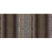 矢車附子で染められたと思われる、深みのあるグレー・海松茶色のシャリっとした地に、淡いグレー・茶鼠色の段が綺麗なグラデーションを表し、そこに黒橡色の焦げ茶や黄枯茶色、桑染色、菖蒲色などのたくさんの色の吉野織が織り込まれて素敵なハーモニーを奏でているような、調和した美しさのある名古屋帯です。