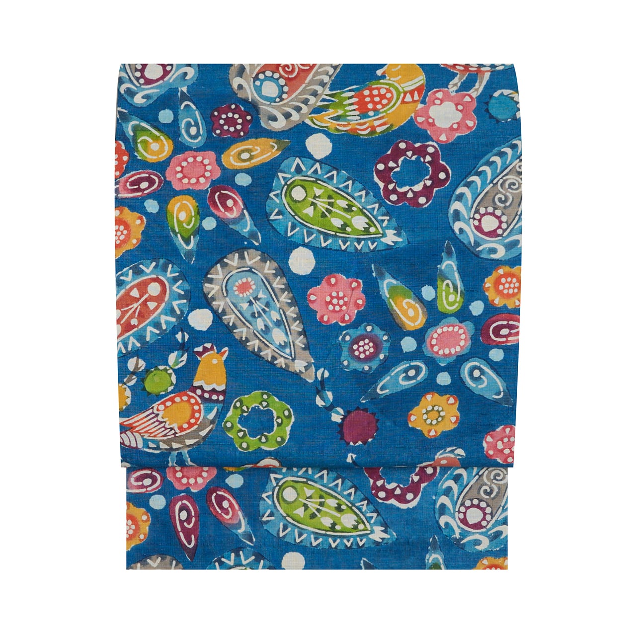 鳥とペイズリーの模様 型絵染全通名古屋帯【中古】