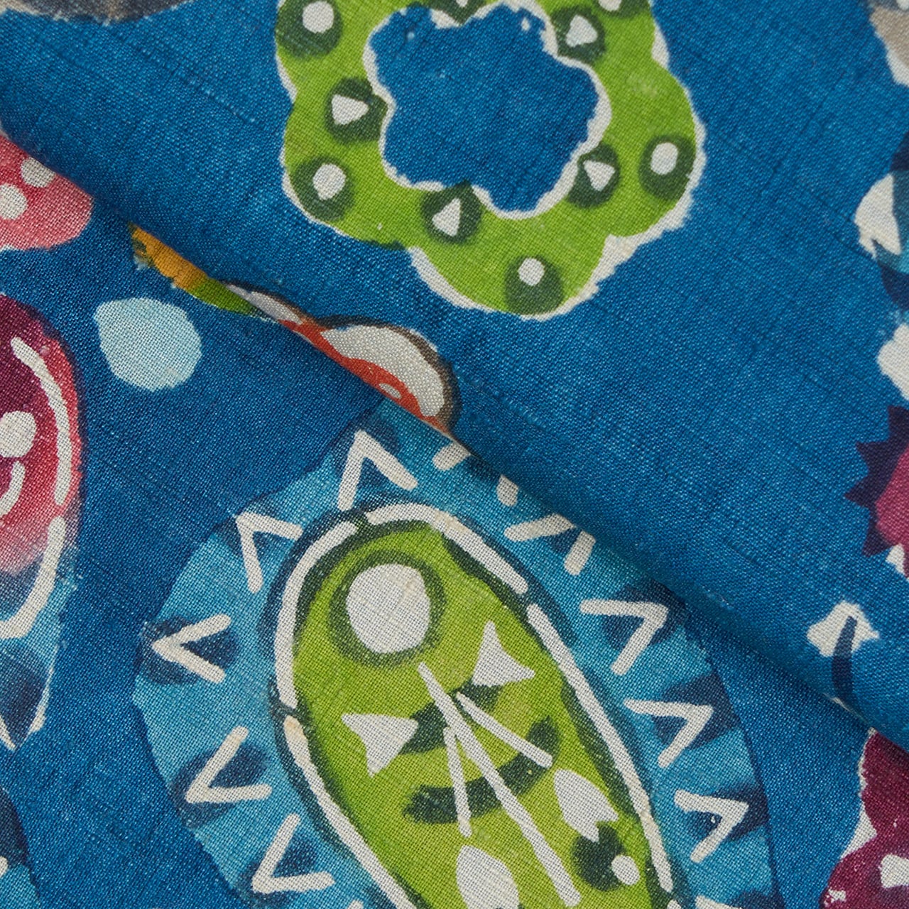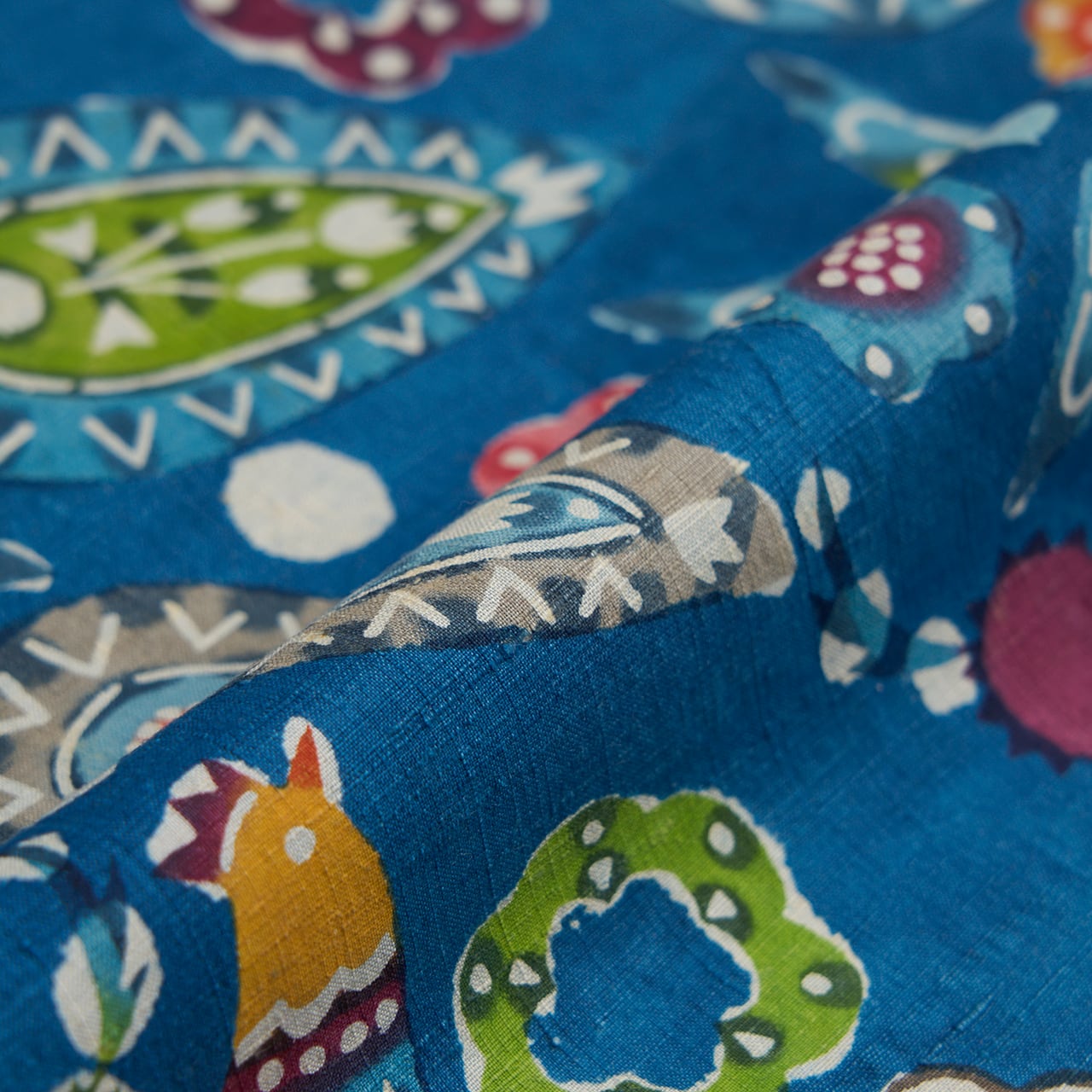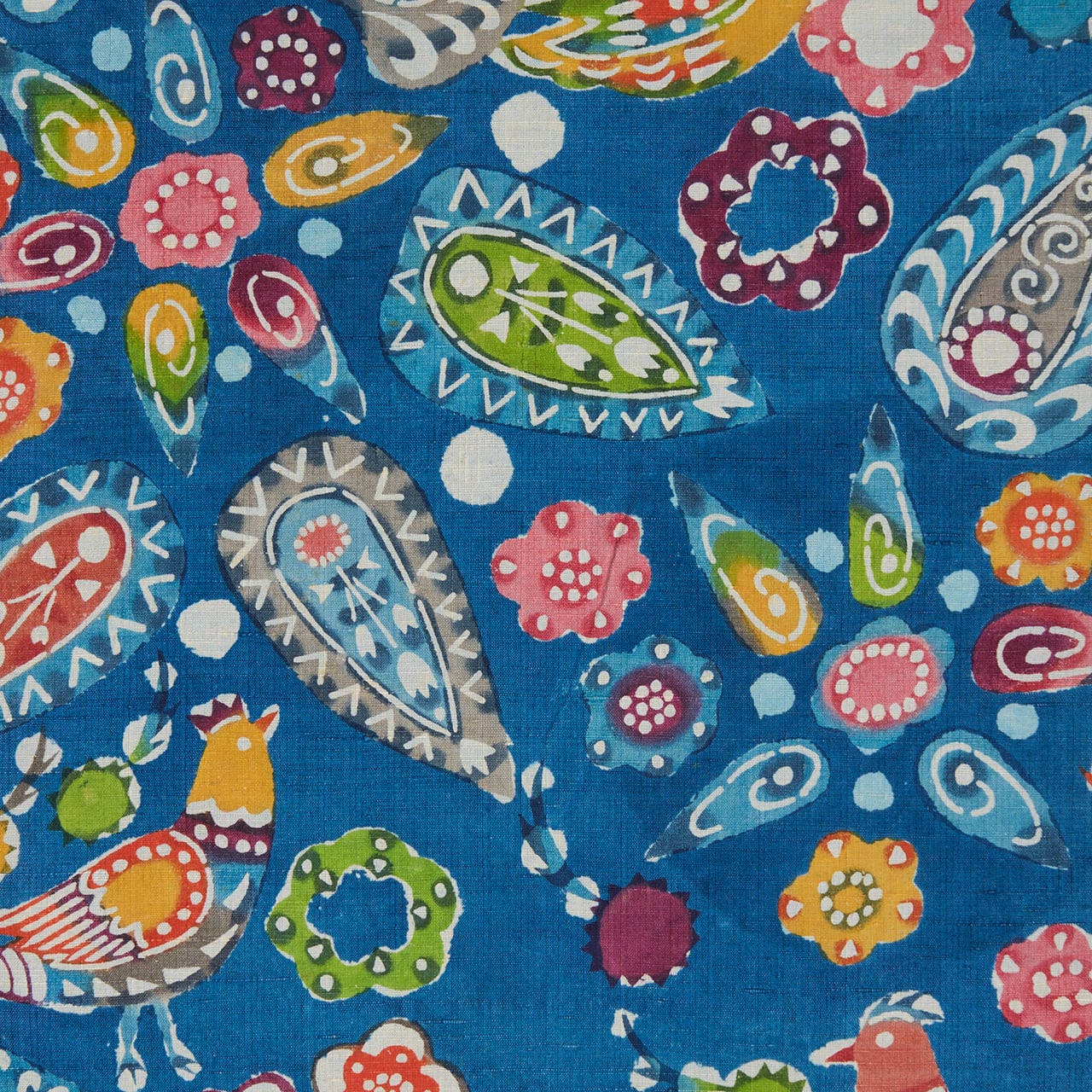 この少し不器用な感じの模様の輪郭や、友禅染ではありえないような色使いなどには、型絵染ならではの面白さが感じられます。