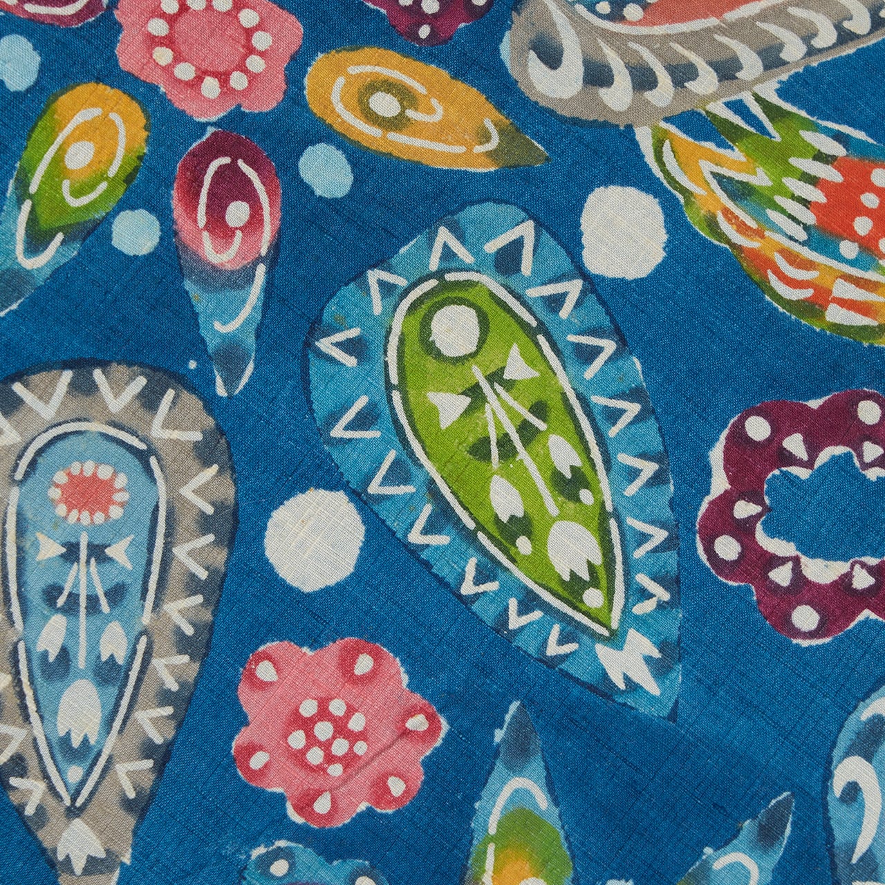 なにも手掛かりがなく作者が判明しませんが、これほどの複雑な模様を何色もの顔料で染められていることや、デザインの良さなどからも、しかるべき作家作品だと思われます。