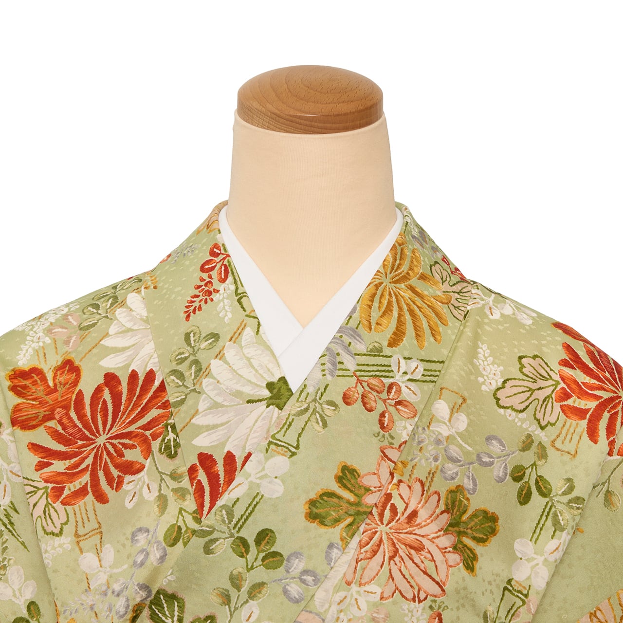 菊のお花は通年取り入れていただける模様のひとつでもありますので、ご着用時期も比較的長く、小紋調の全体柄となっていますので、ご着用範囲も少し広いと思われます。