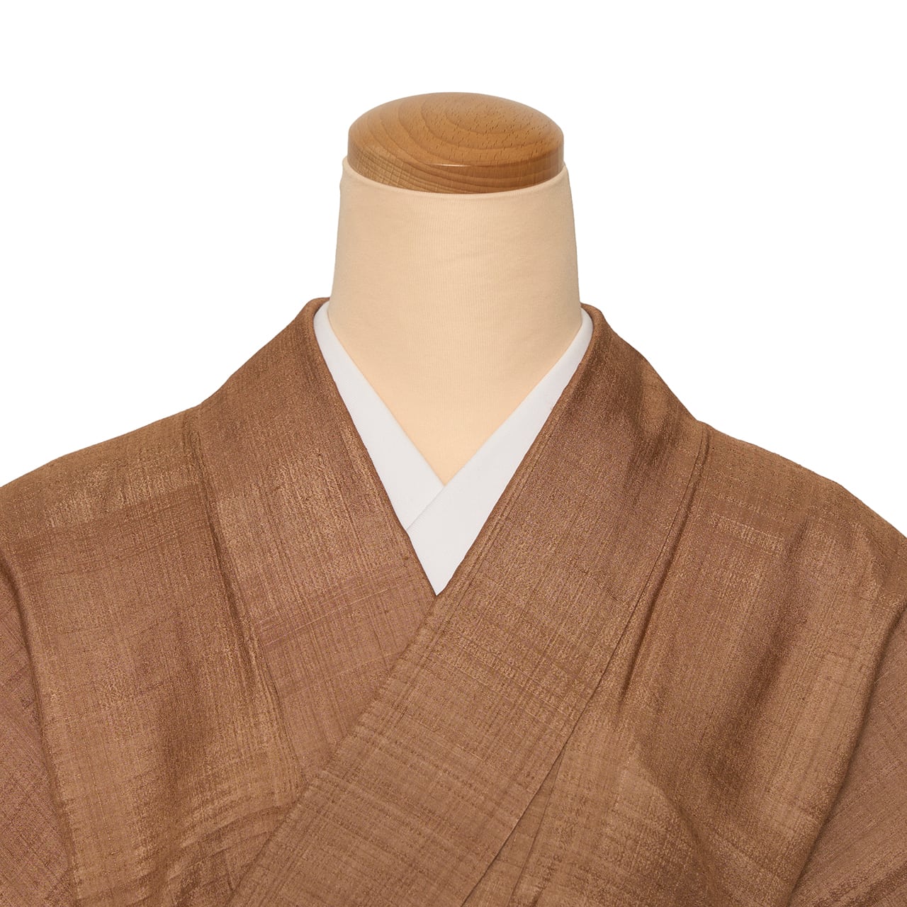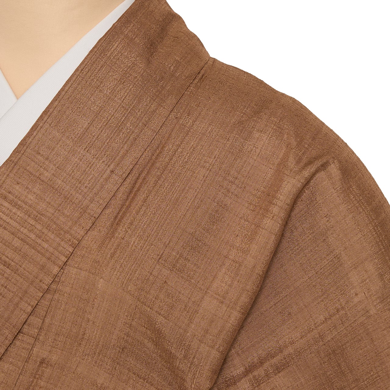 ゴールデンムガシルクならではの味わいのある風合いとなっていて、オリエンタルな雰囲気の模様がとてもお洒落で大変魅力的な、素晴らしいお着物です。