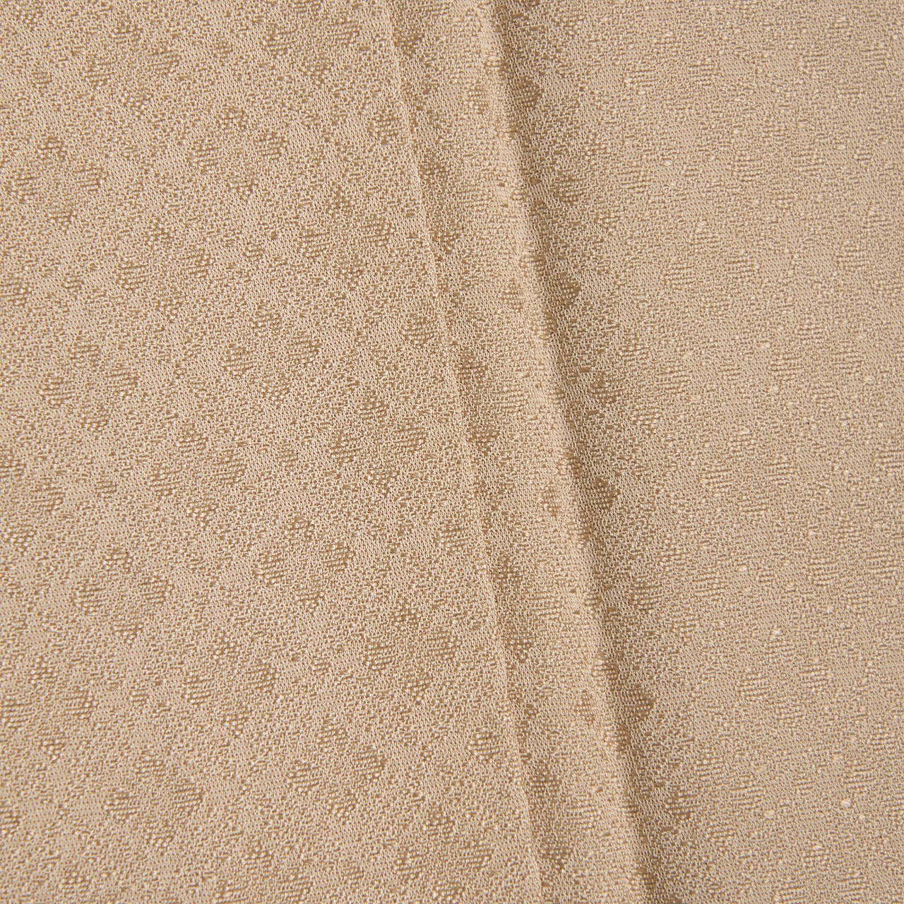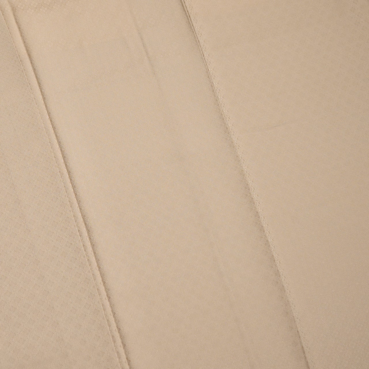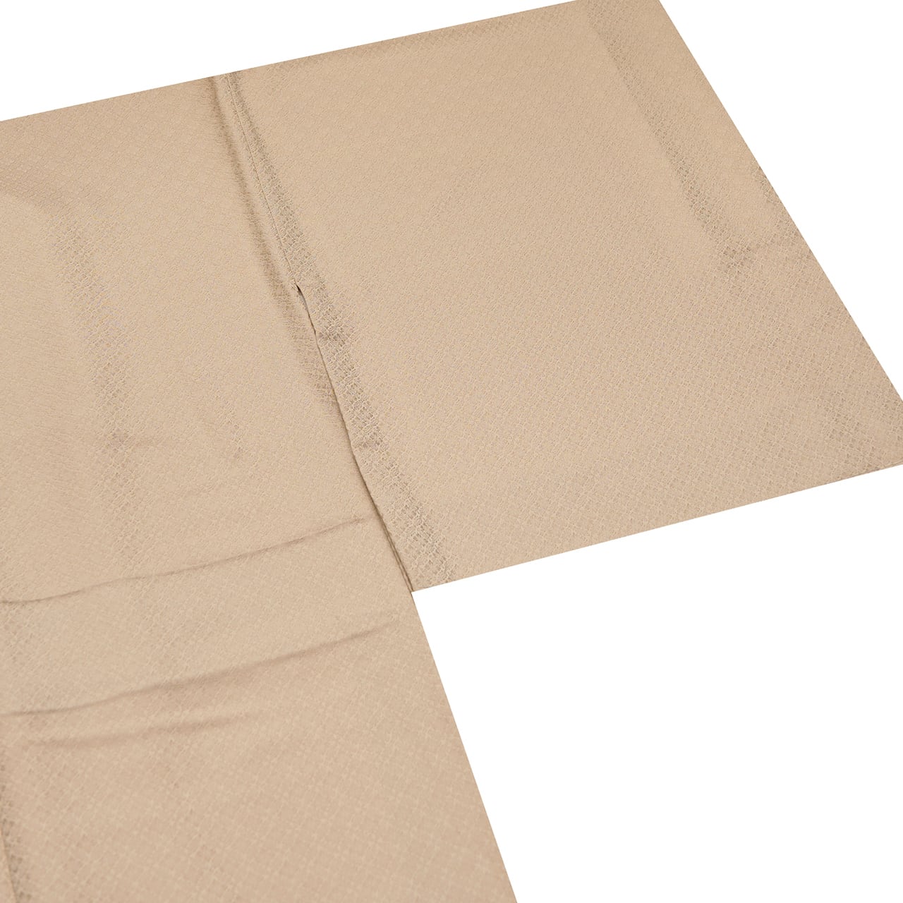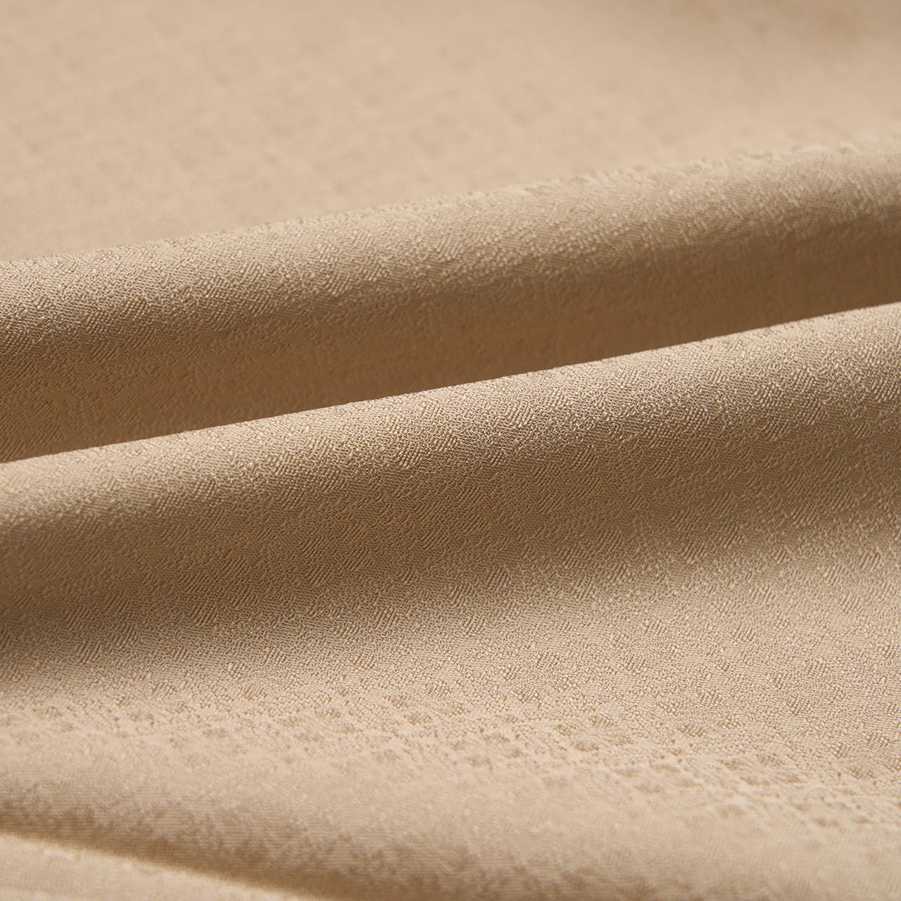 模様の一辺が1cmちょっとくらいの大きさの小葵文様が連続して織り込まれた紋意匠の生地が、淡く明るめのベージュ・亜麻色に染められた、有職文様ならではのとても気品の感じられる素敵な地紋無地のお着物です。