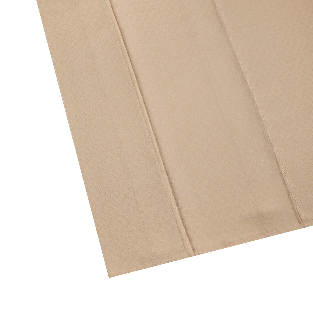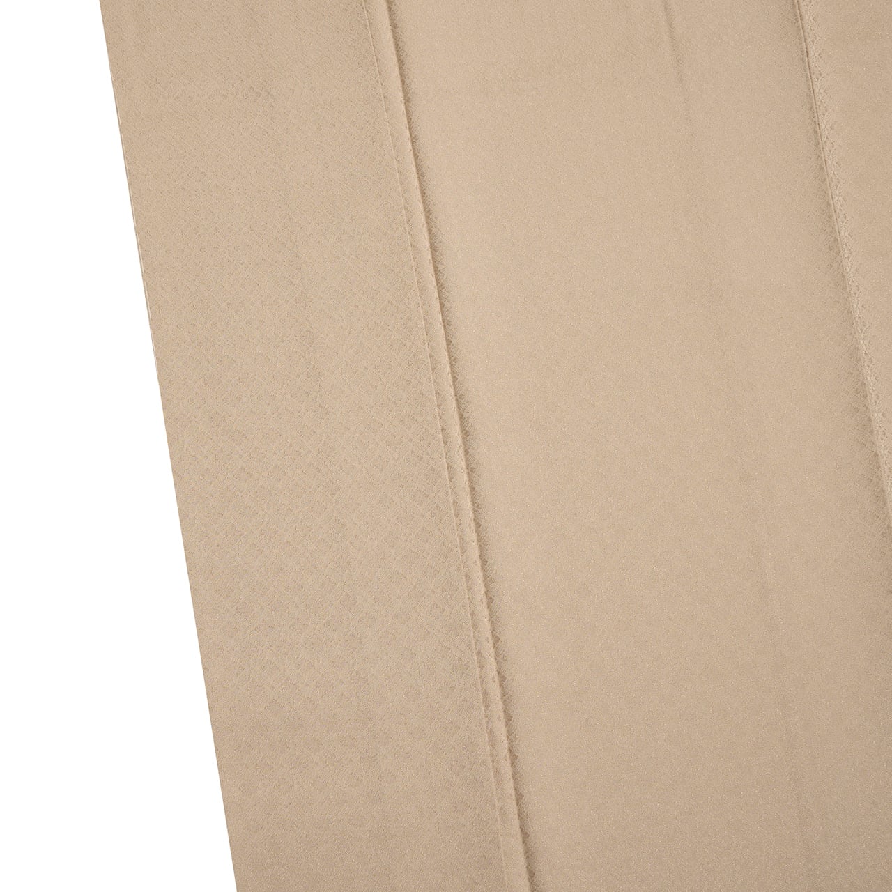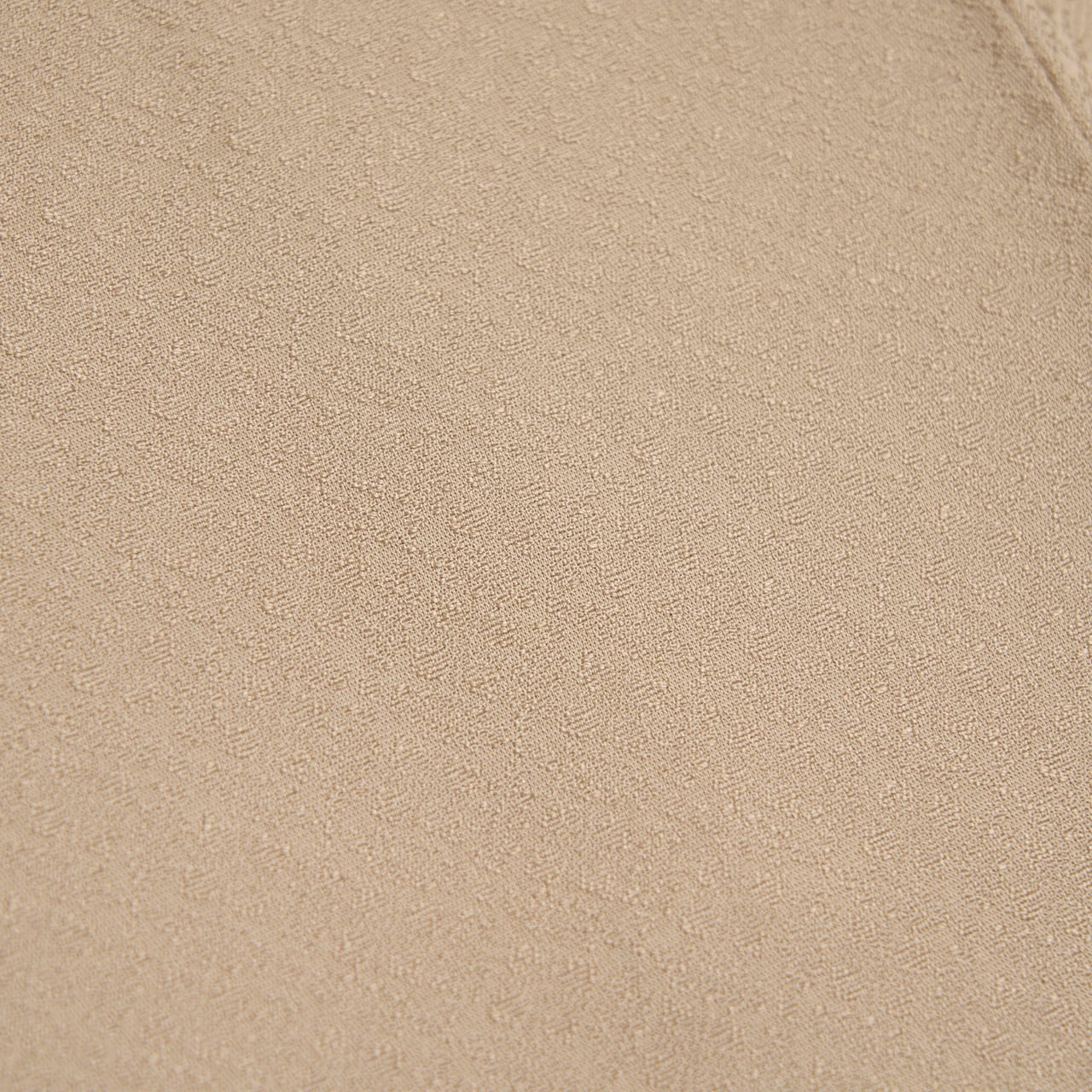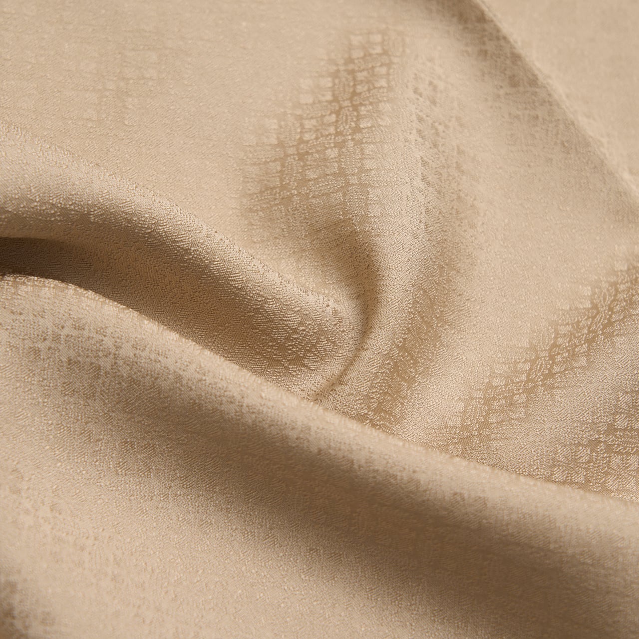 模様の一辺が1cmちょっとくらいの大きさの小葵文様が連続して織り込まれた紋意匠の生地が、淡く明るめのベージュ・亜麻色に染められた、有職文様ならではのとても気品の感じられる素敵な地紋無地のお着物です。
