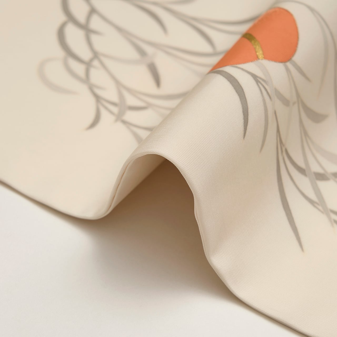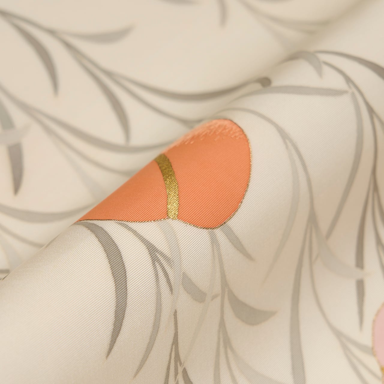 こちらの図案は、江戸時代の能衣裳に取材したものと思われ、オリジナルは豪華絢爛な唐織の衣装で、徳川美術館に所蔵されています。