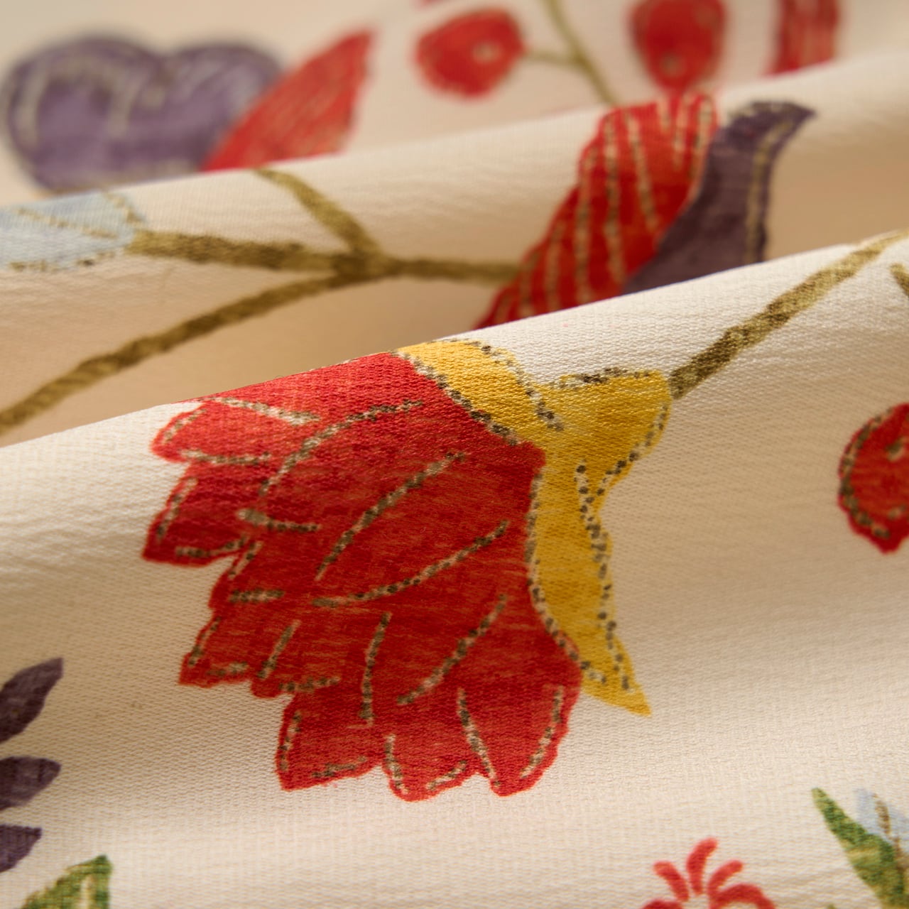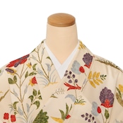 草花に鳥の模様 摺型友禅 一方附小紋袷着物【中古】