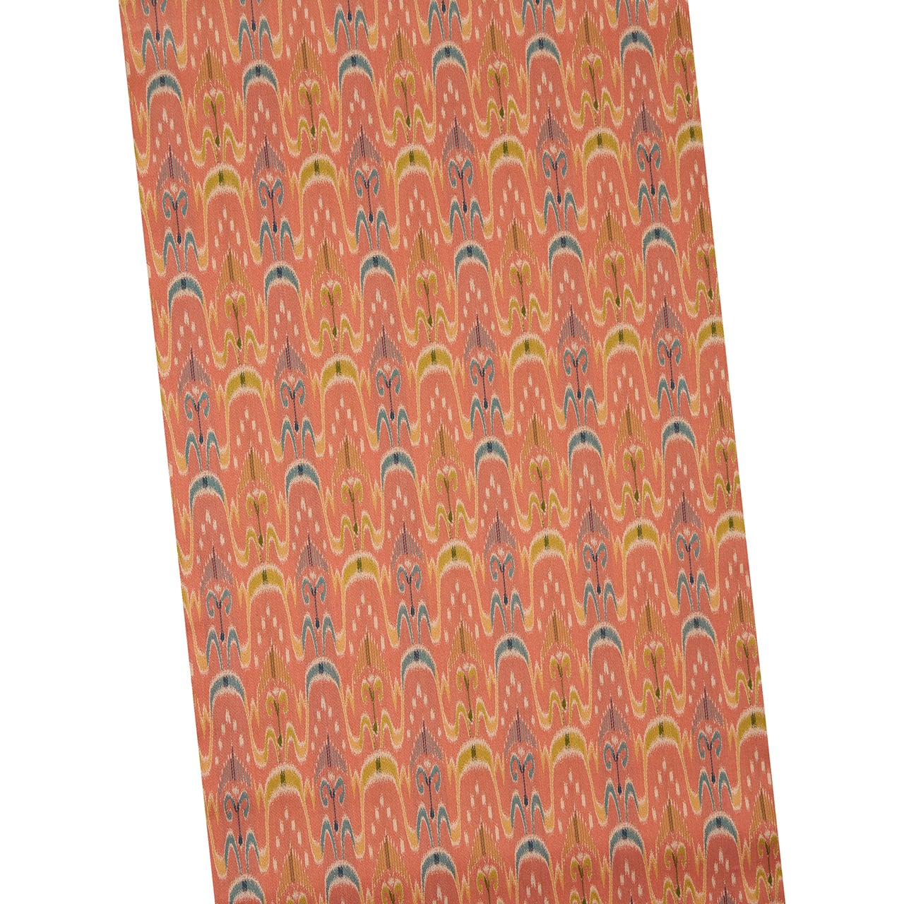 基本的には経の絣糸による構成で織り出されますが、山岳や人物を造形化したものなど様々で、現在ではインドネシア産のイカットの布などに近いものを見ることができます。