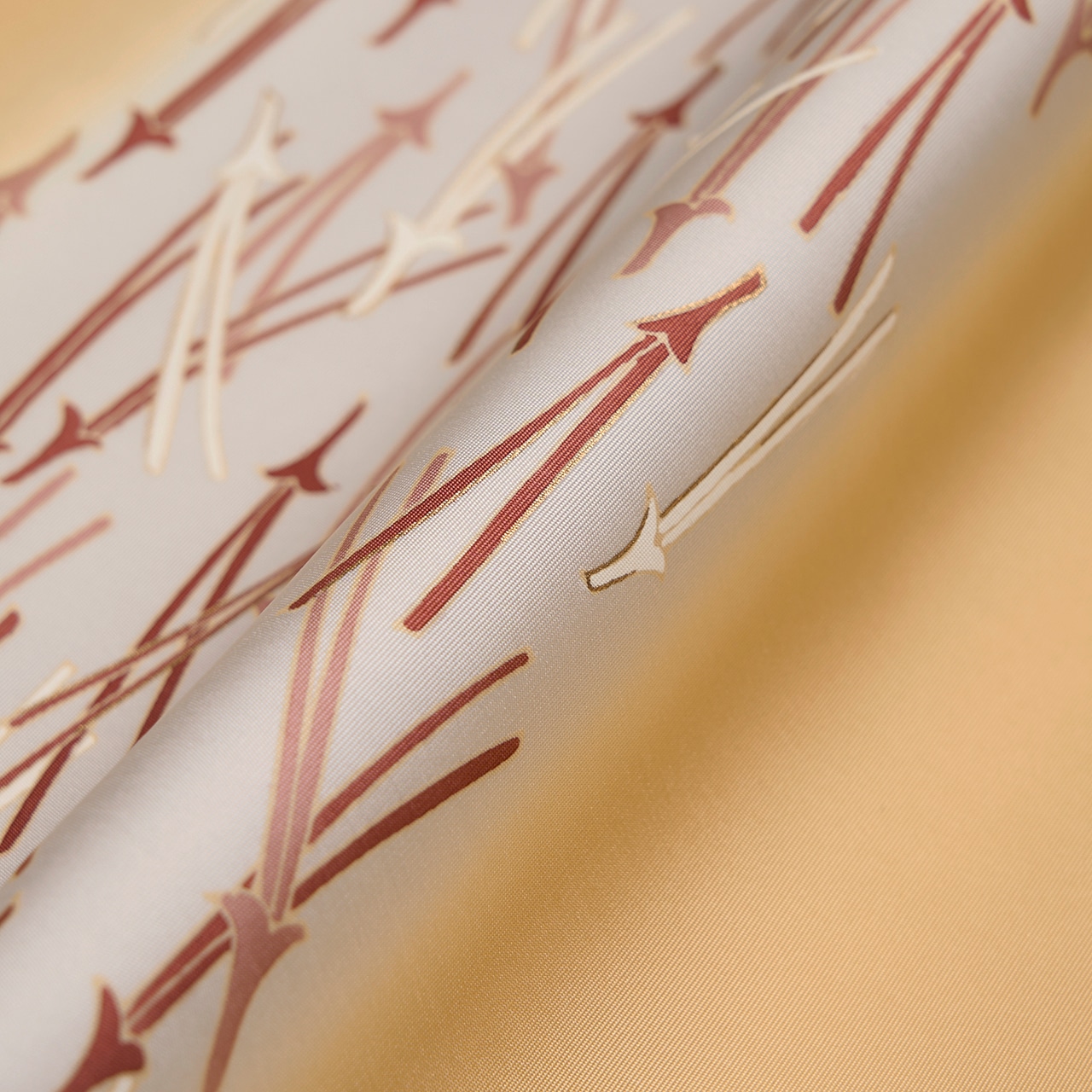 その落ち葉の模様もまた、落ちても二本の葉がしっかりとつながっていることから、強い絆でつながり離れ離れにならないということで、夫婦円満の意味も込められたおめでたい文様だといわれています。