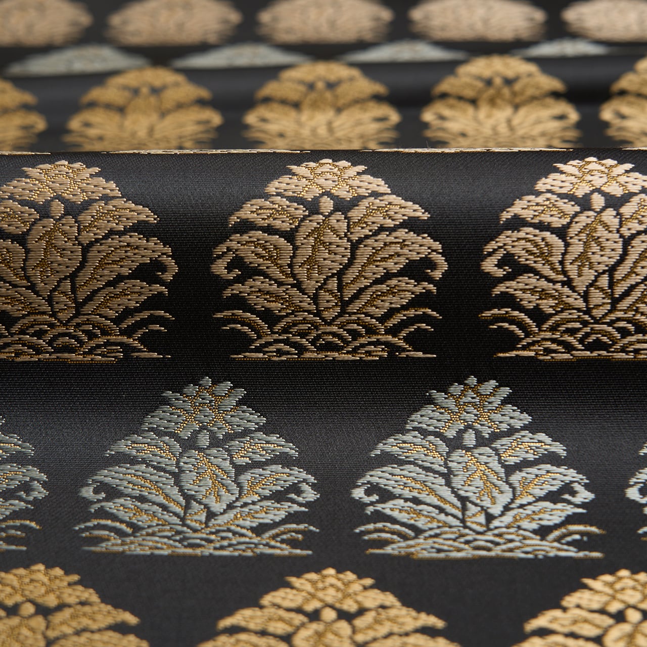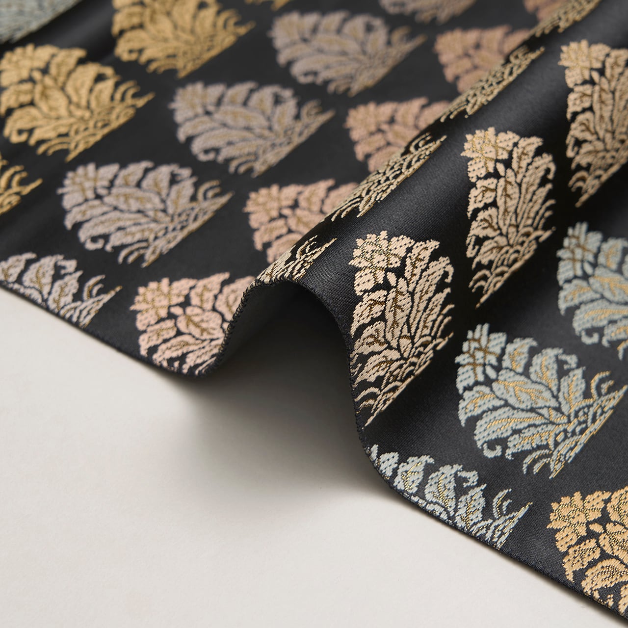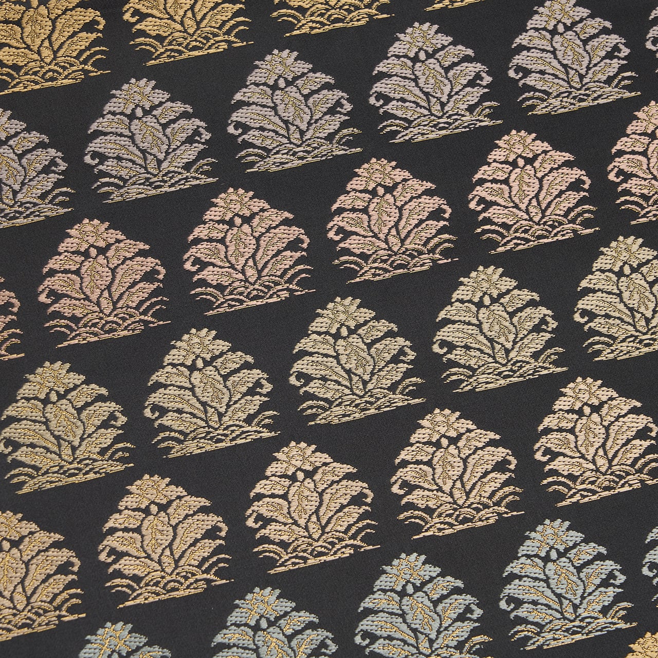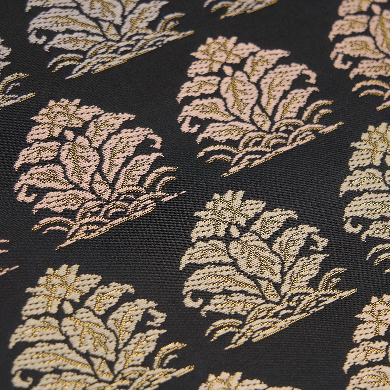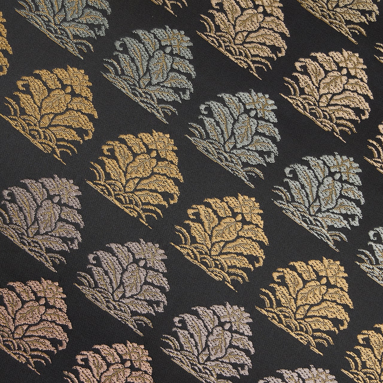 名物裂の中でも古渡りの代表的な存在ともいえる鶏頭金襴の文様は、草花の大きさによって、大鶏頭、中鶏頭、小鶏頭と呼び名も変わるそうですが、古い茶器などのお仕覆裂には大鶏頭の模様が好まれたようです。