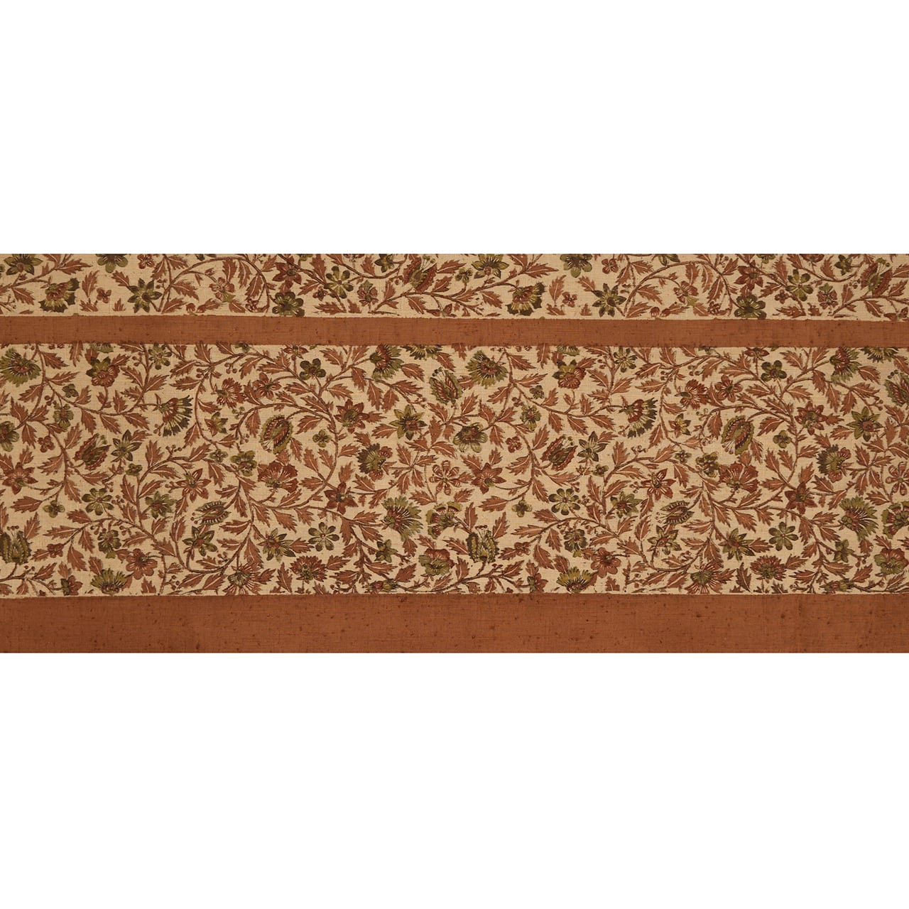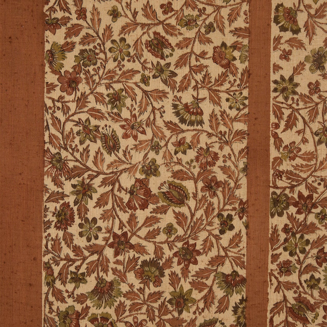 古いアンティークの更紗を見ているようなシックな色合いがとても魅力的で、これが全通で細かく染められているのも贅沢感があり、とてもお洒落な帯となっています。