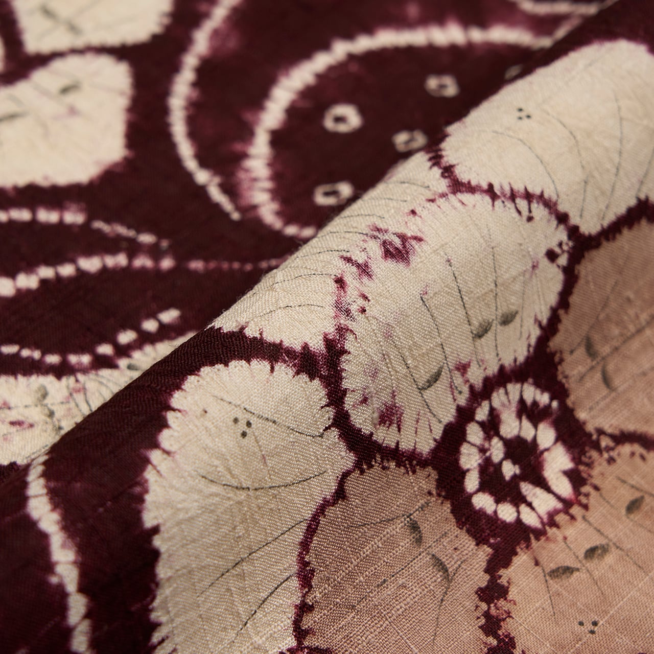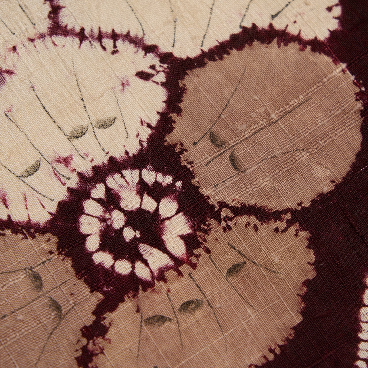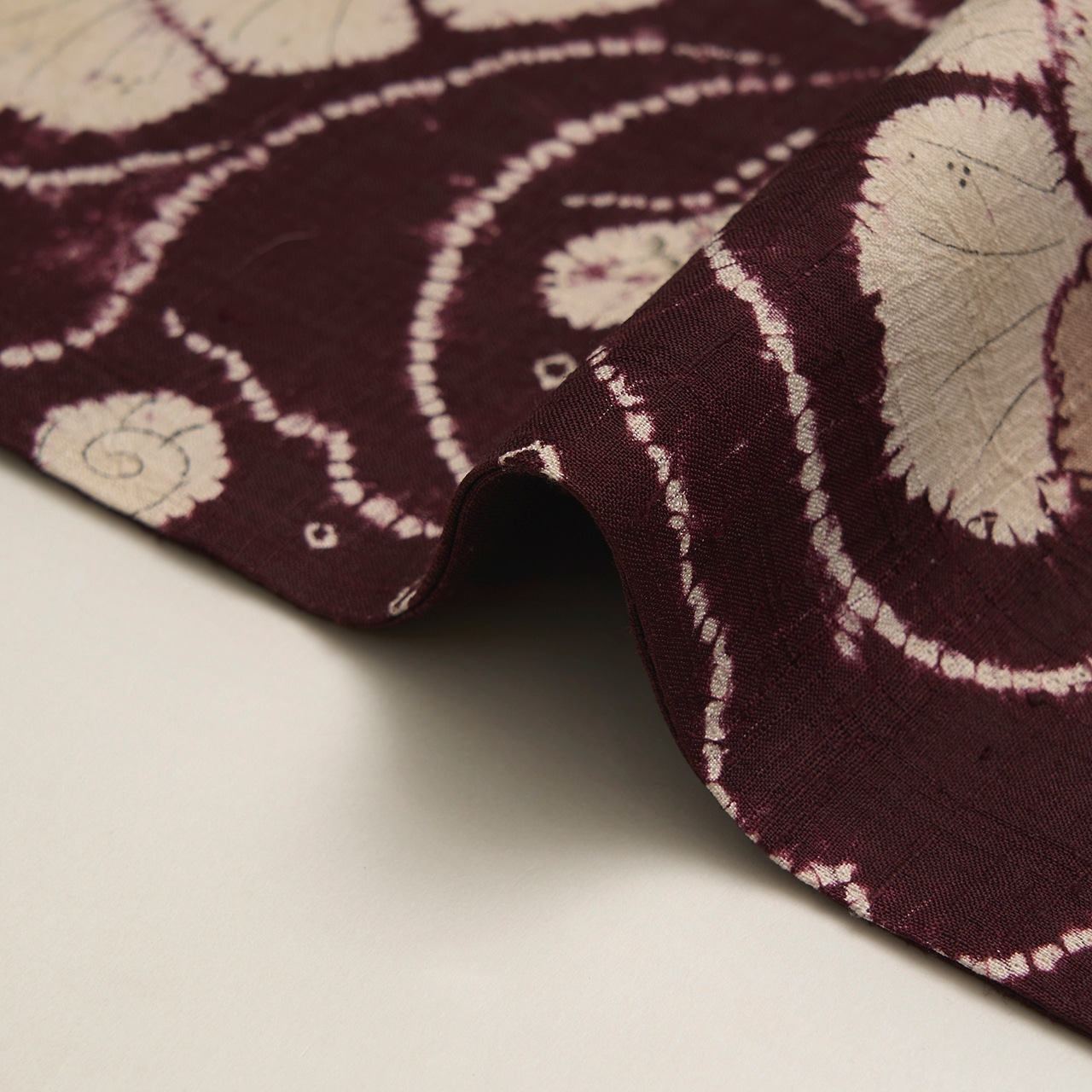 地染めの葡萄色も、化学染料というよりは茜染めなどの草木染的な色合いとなっていて、濃い色の深い味わいと薄い色の透明感がとても綺麗に目に映ります。
