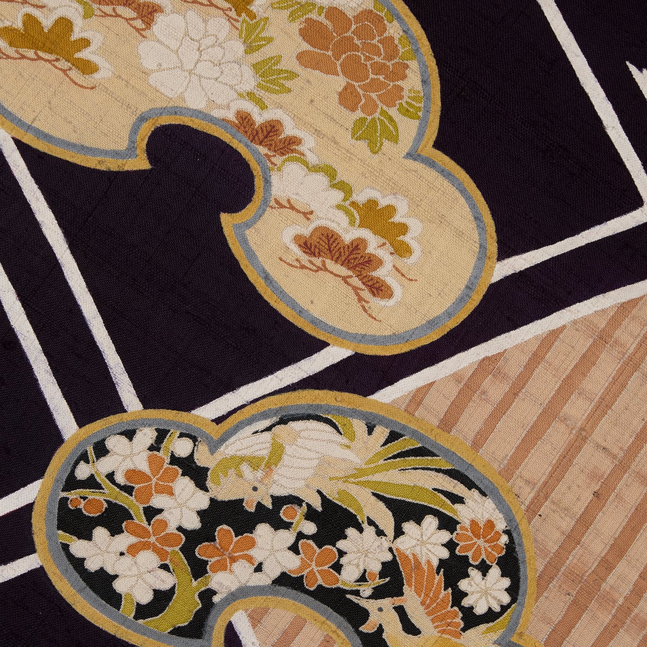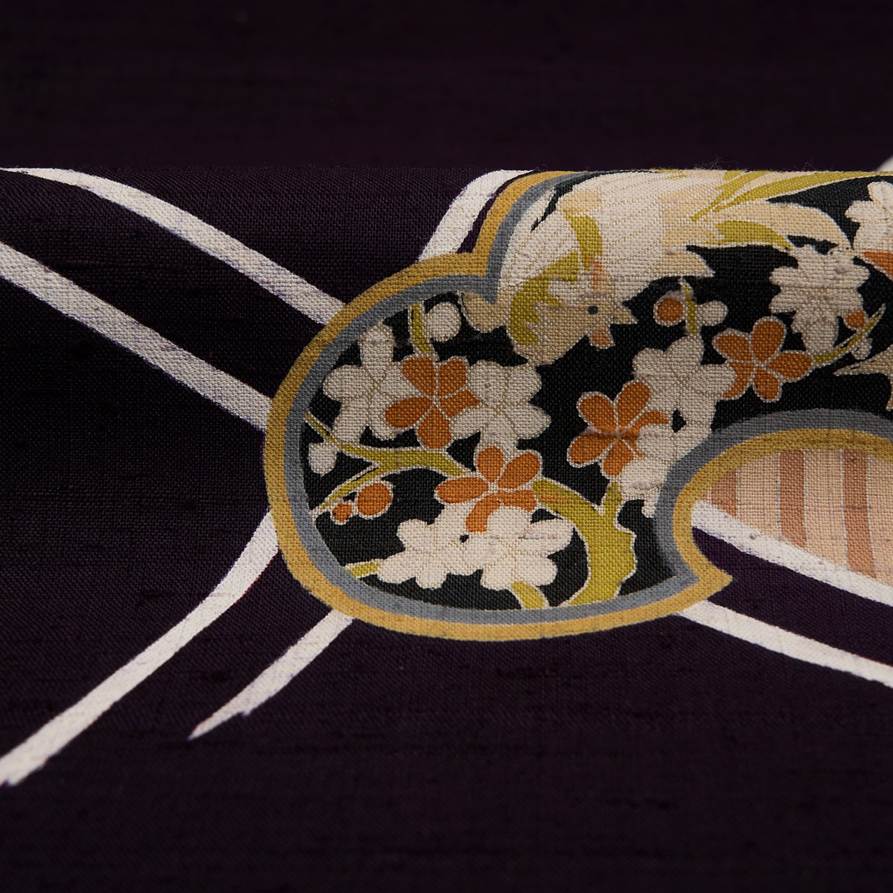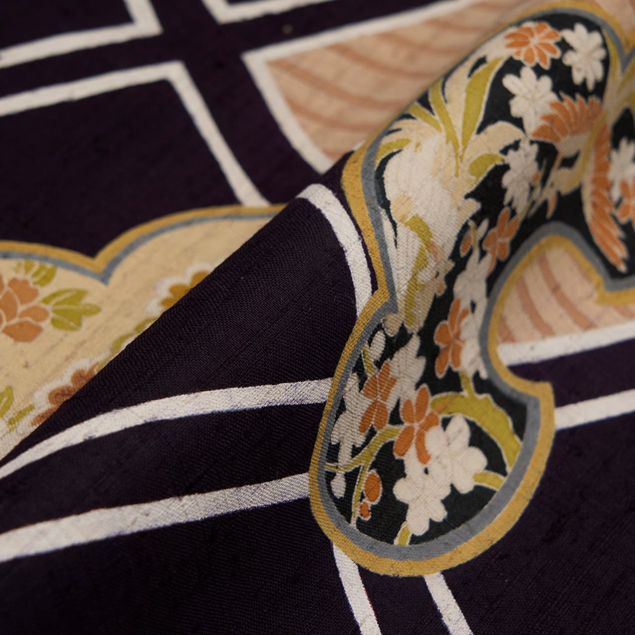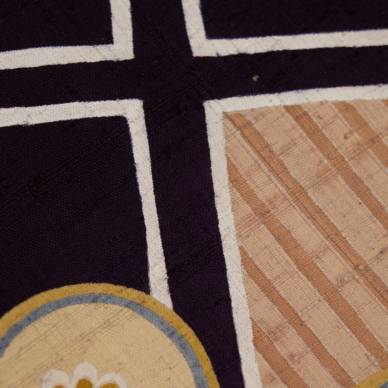 斜め格子の模様は友禅で染め抜かれた線に胡粉で彩色されていて、よりはっきりとした発色となっています。