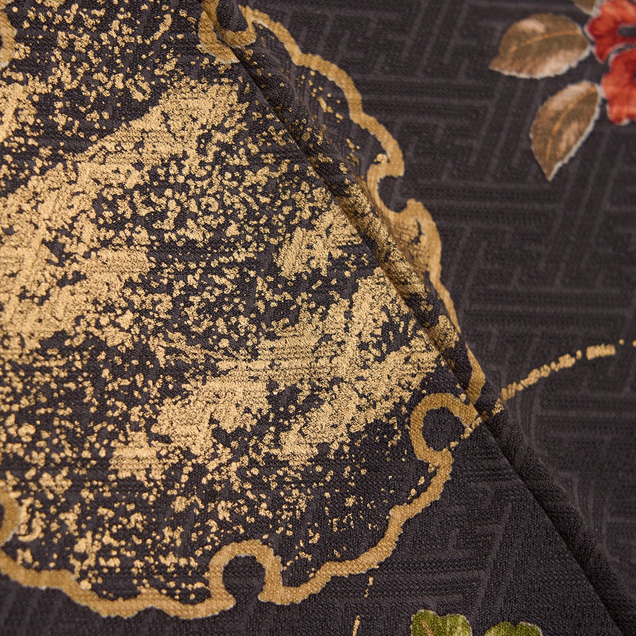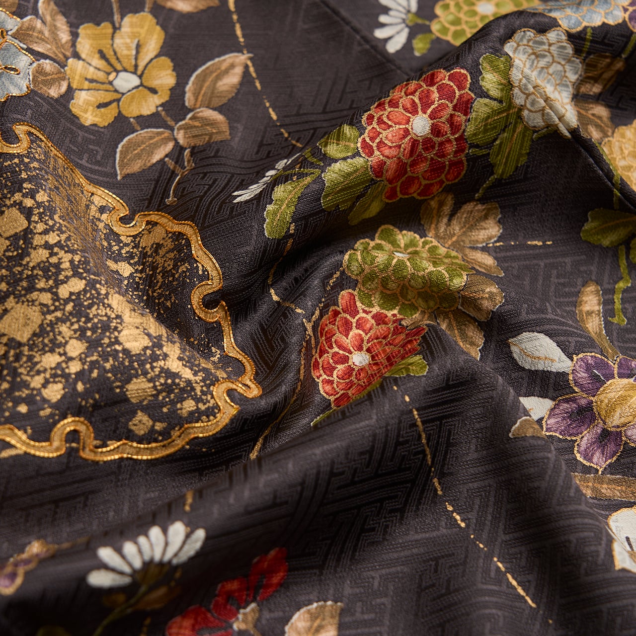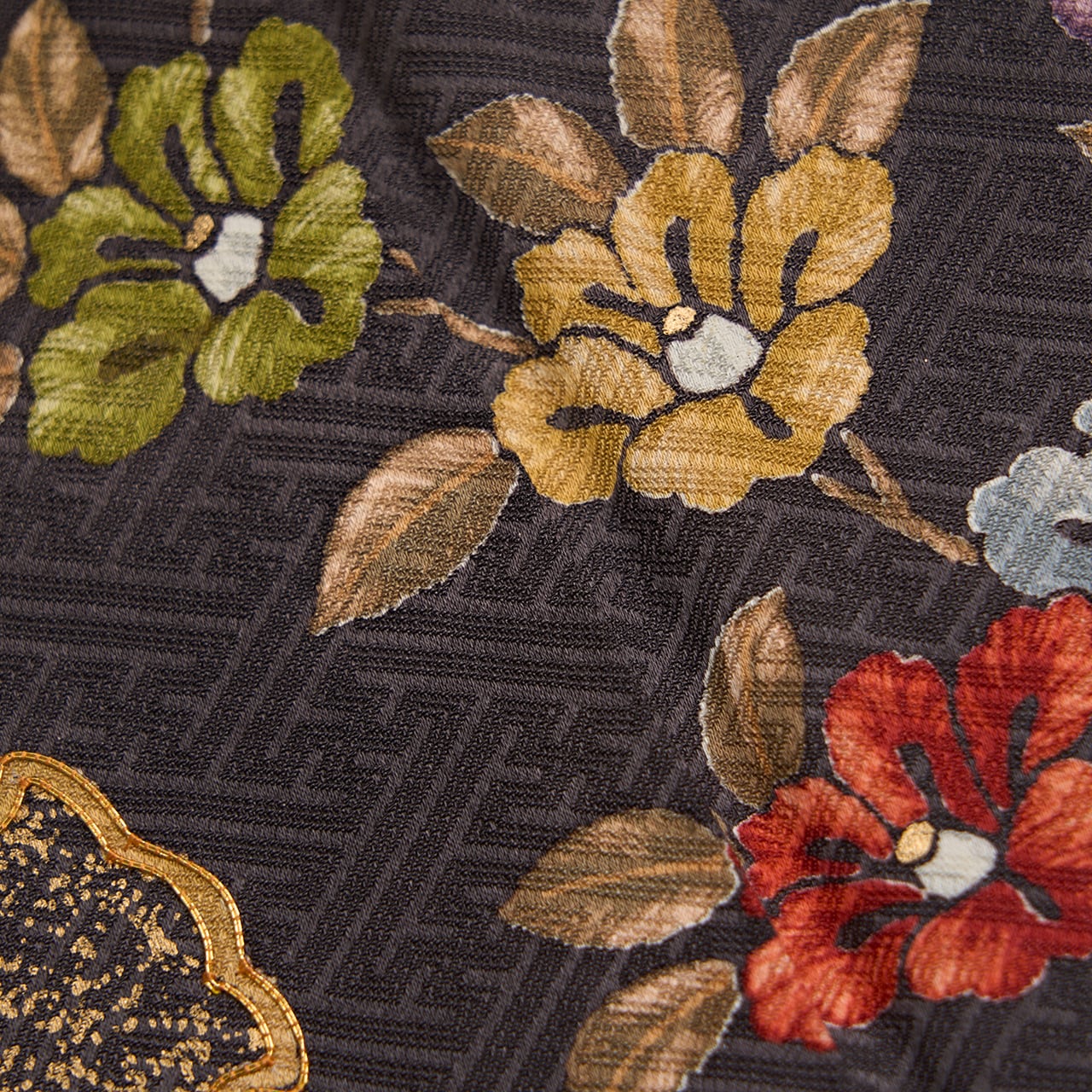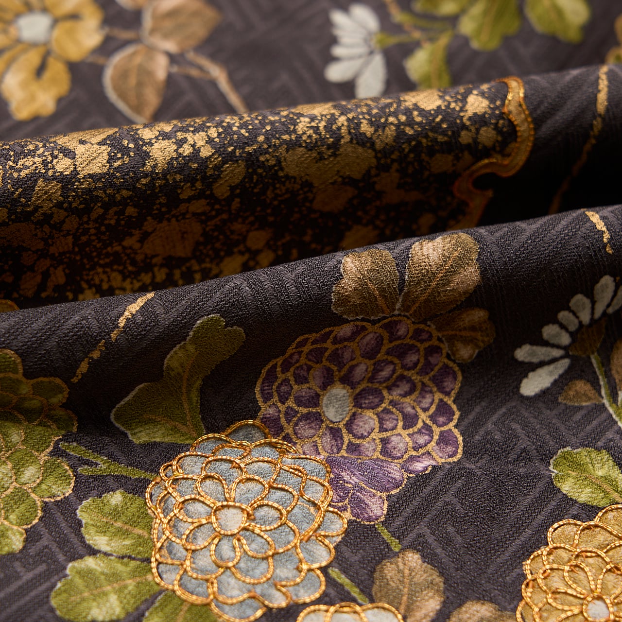 全体的に草花がグループで描かれていますが、それが全て繋がるように染められていることもとても豪華な雰囲気となっています。