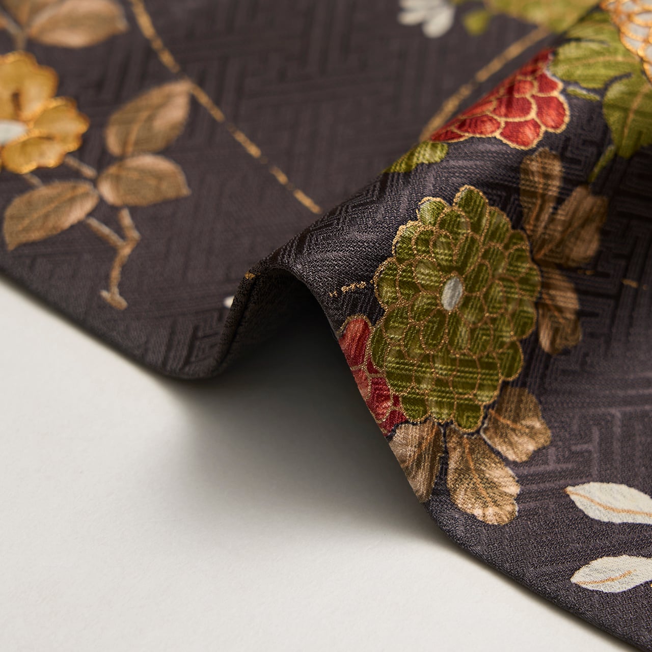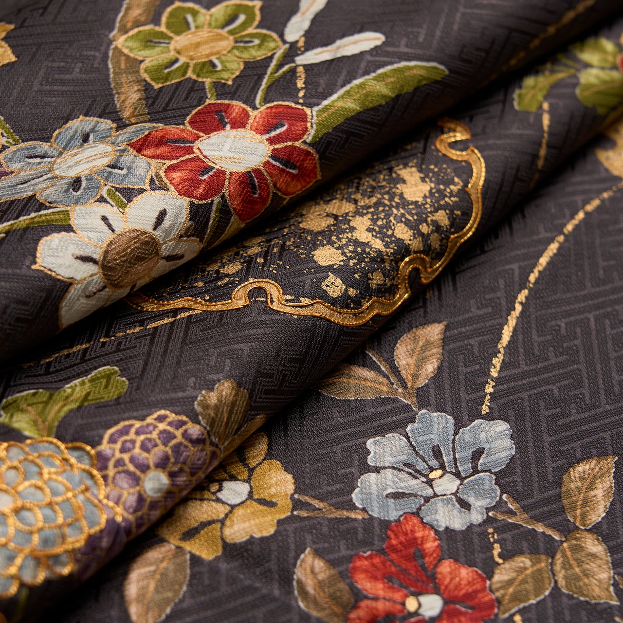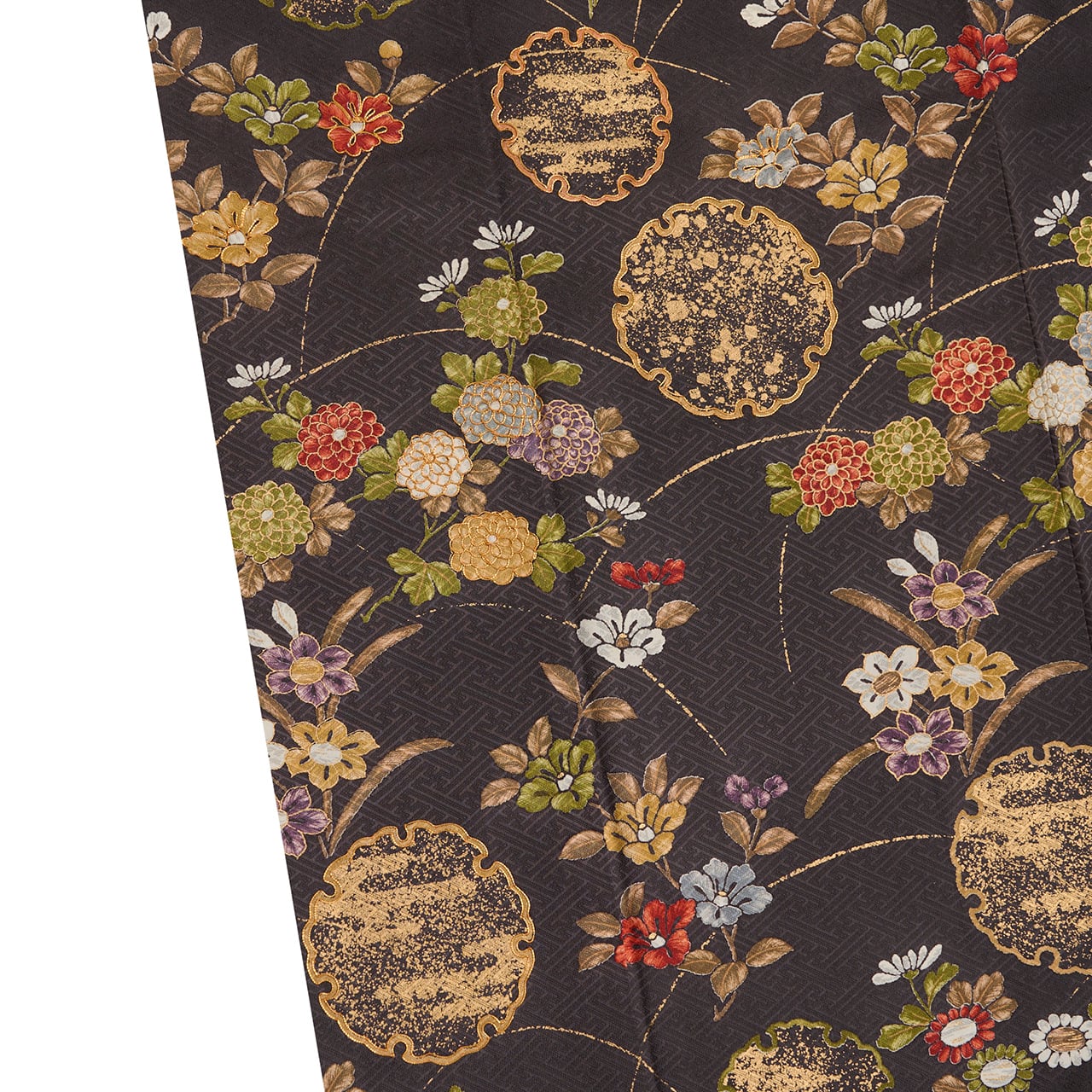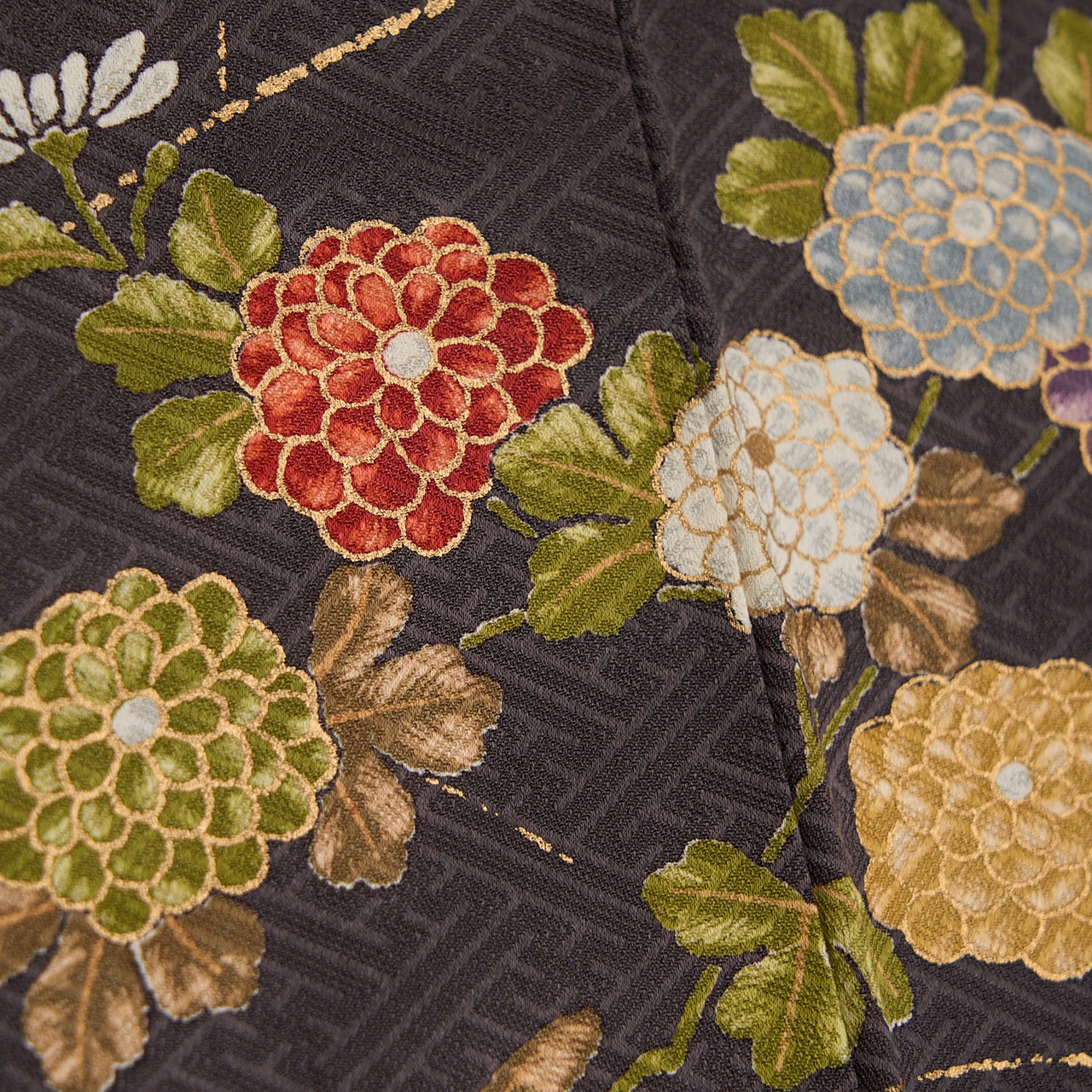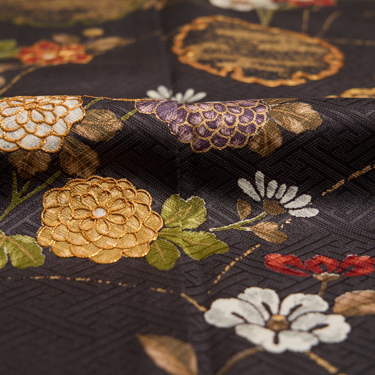 全体的に草花がグループで描かれていますが、それが全て繋がるように染められていることもとても豪華な雰囲気となっています。