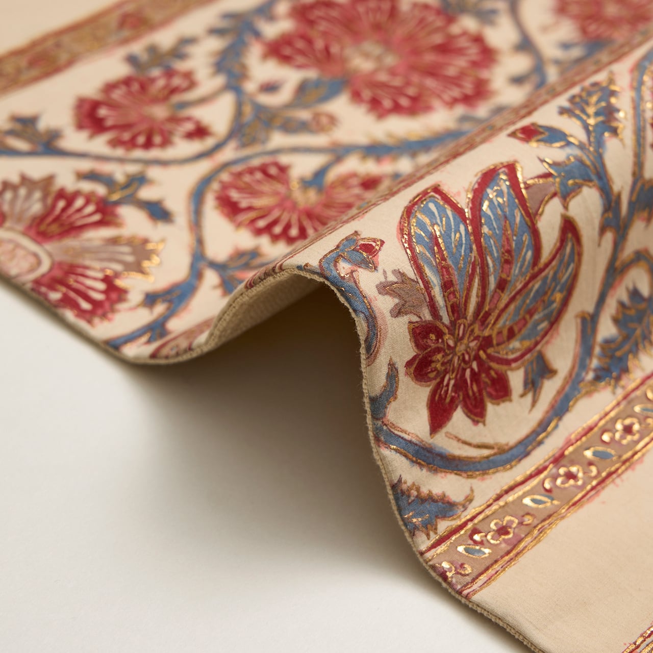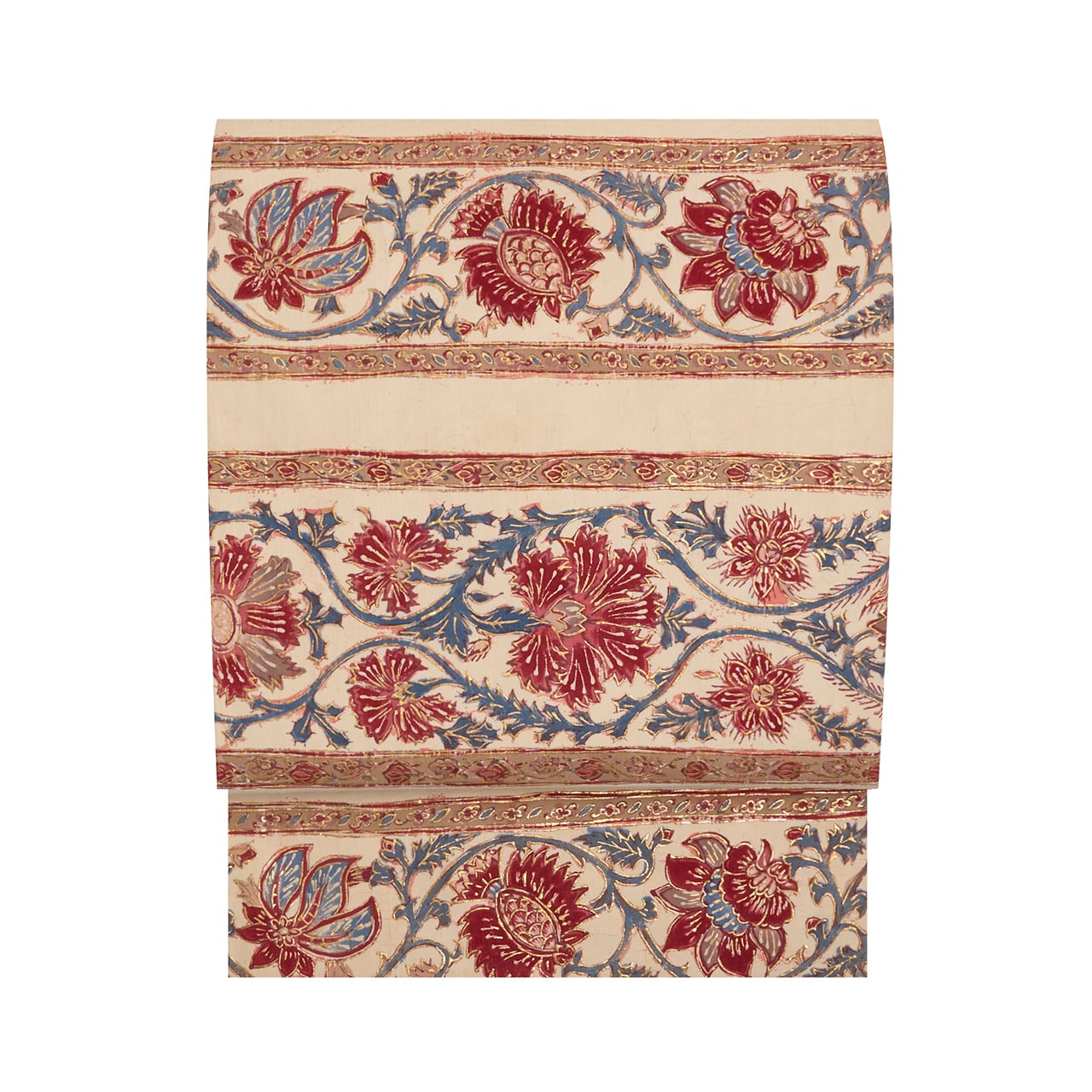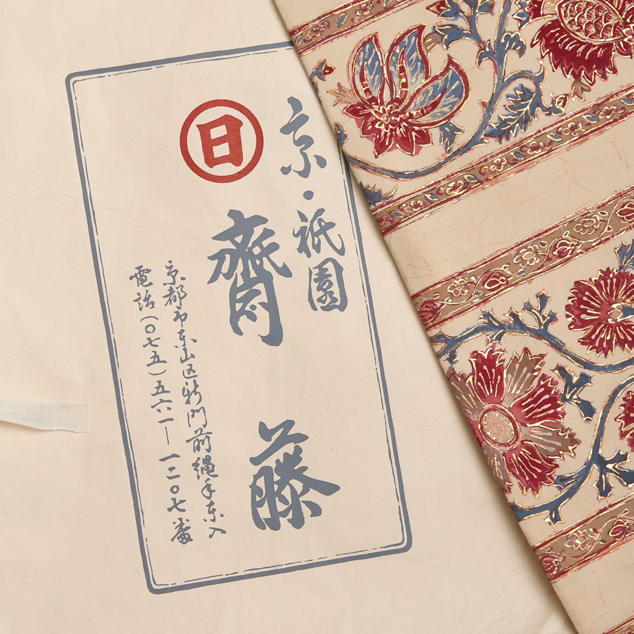 ぎをん齋藤 段変わり唐花模様金更紗 全通 木綿 袋なごや帯【未着用品】