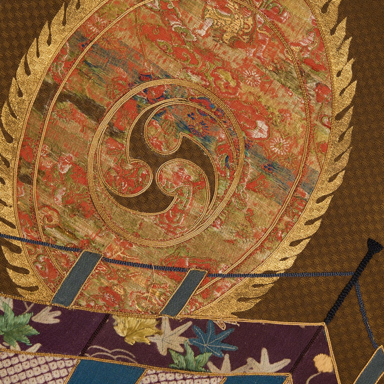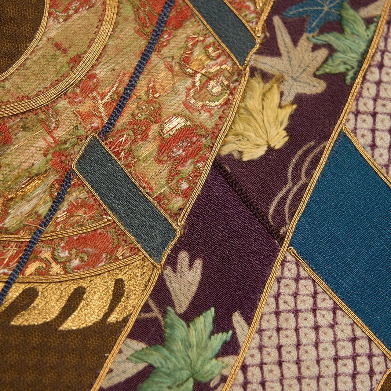 時代裂のアップリケの生地の取り入れ方もセンスが良く、金彩に細やかな手刺繍など、見どころの多いとても優れた作品だと思います。