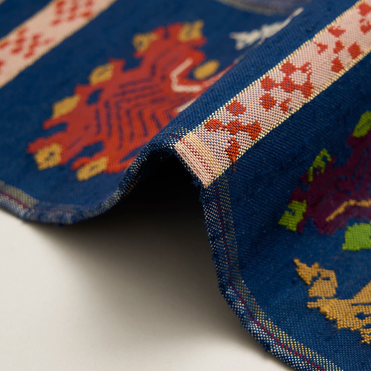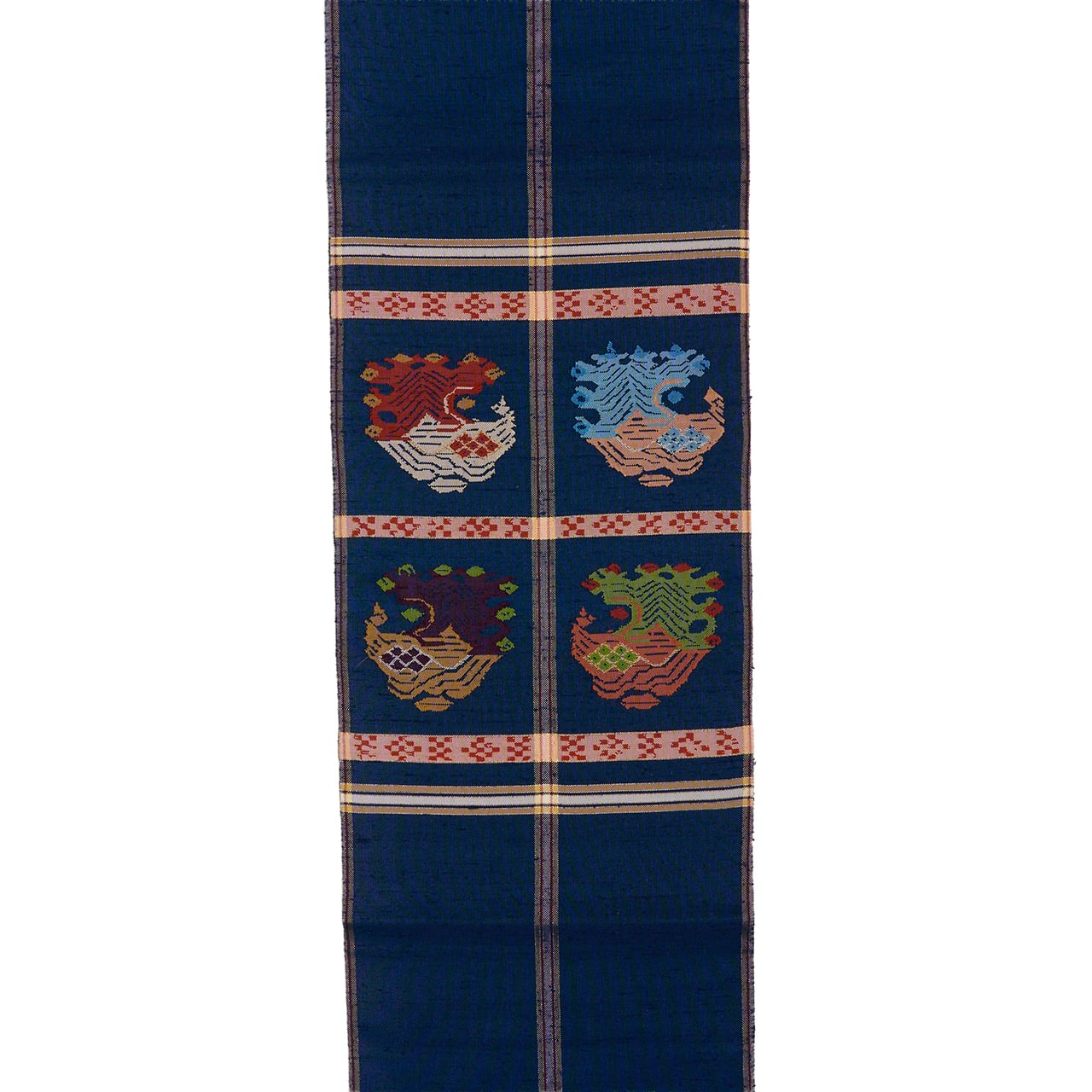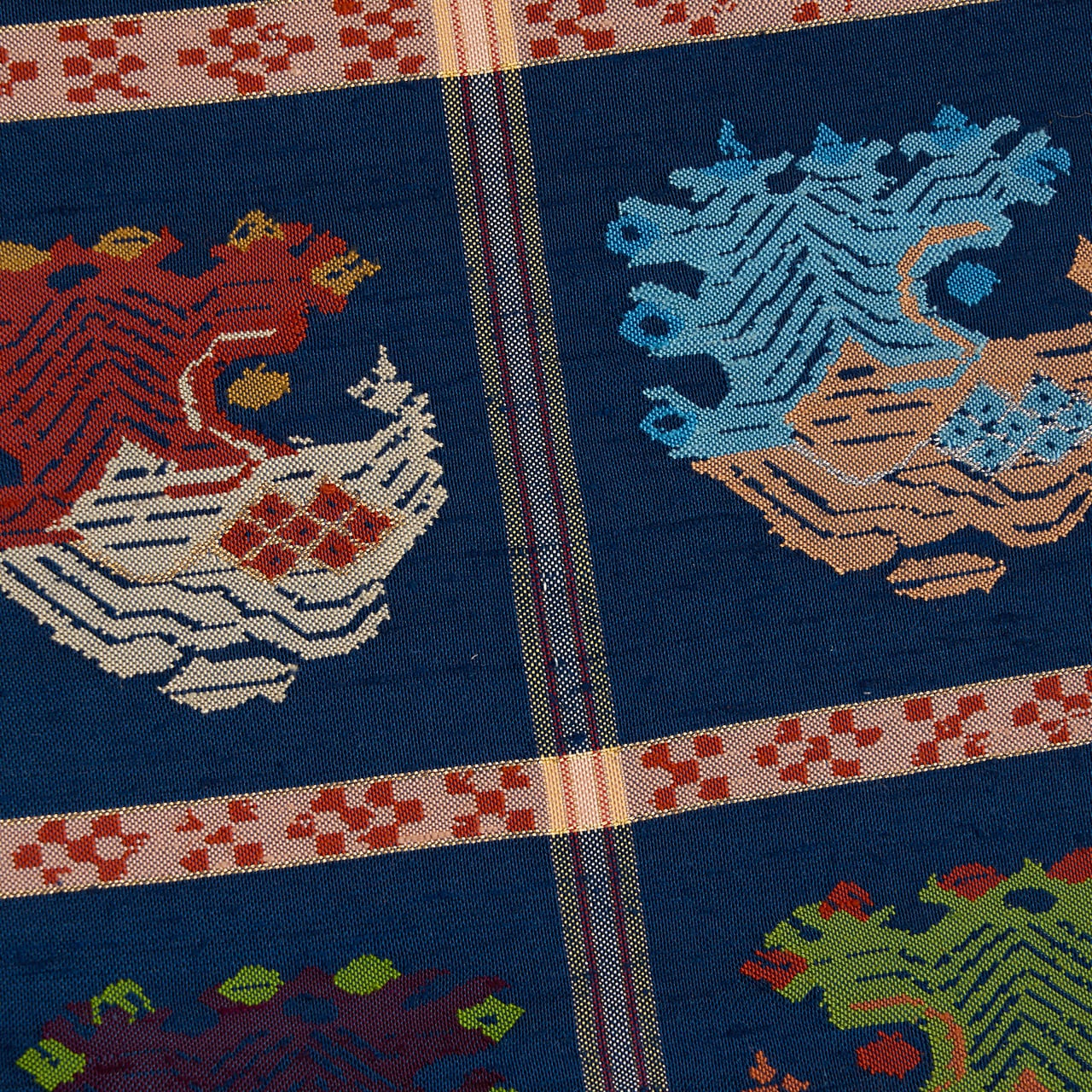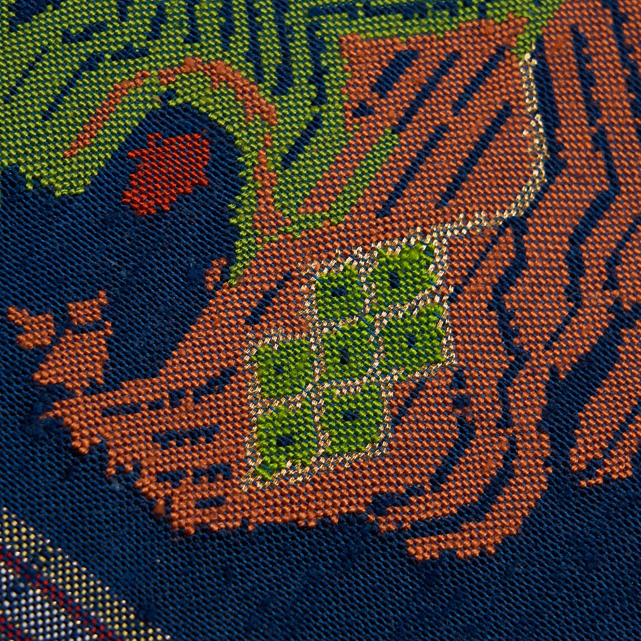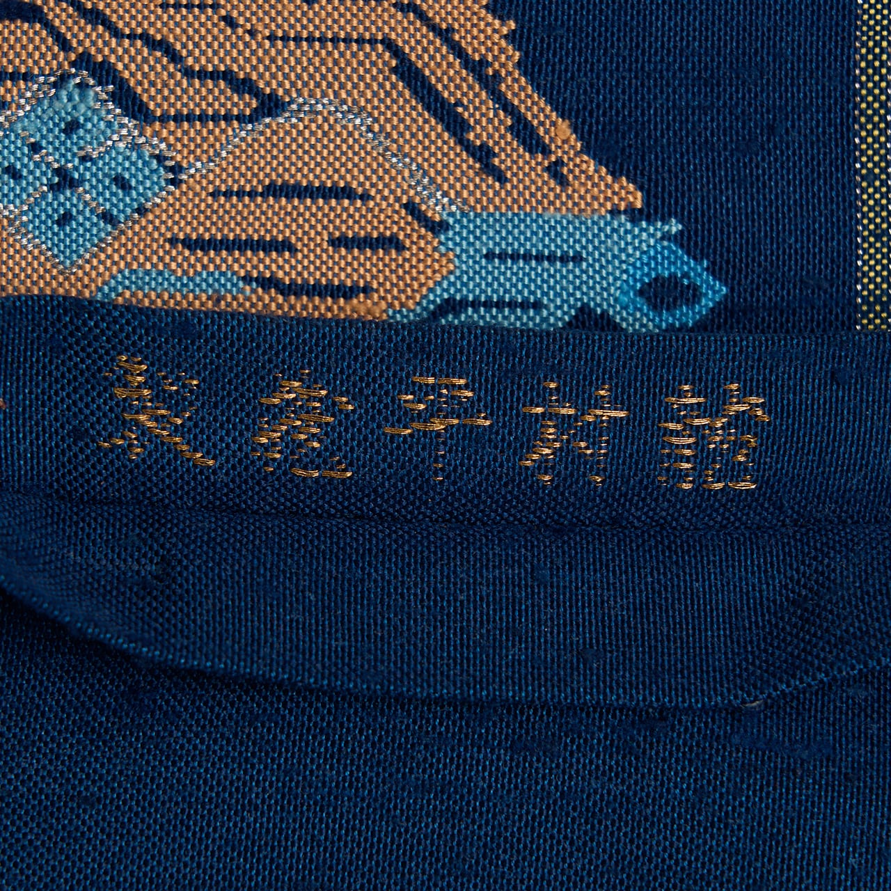 こちらは全体的な発色の新しさや、金糸が使われていることなどからも、四代目龍村平蔵さんの頃の比較的新しい作品ではないかと思われます。
