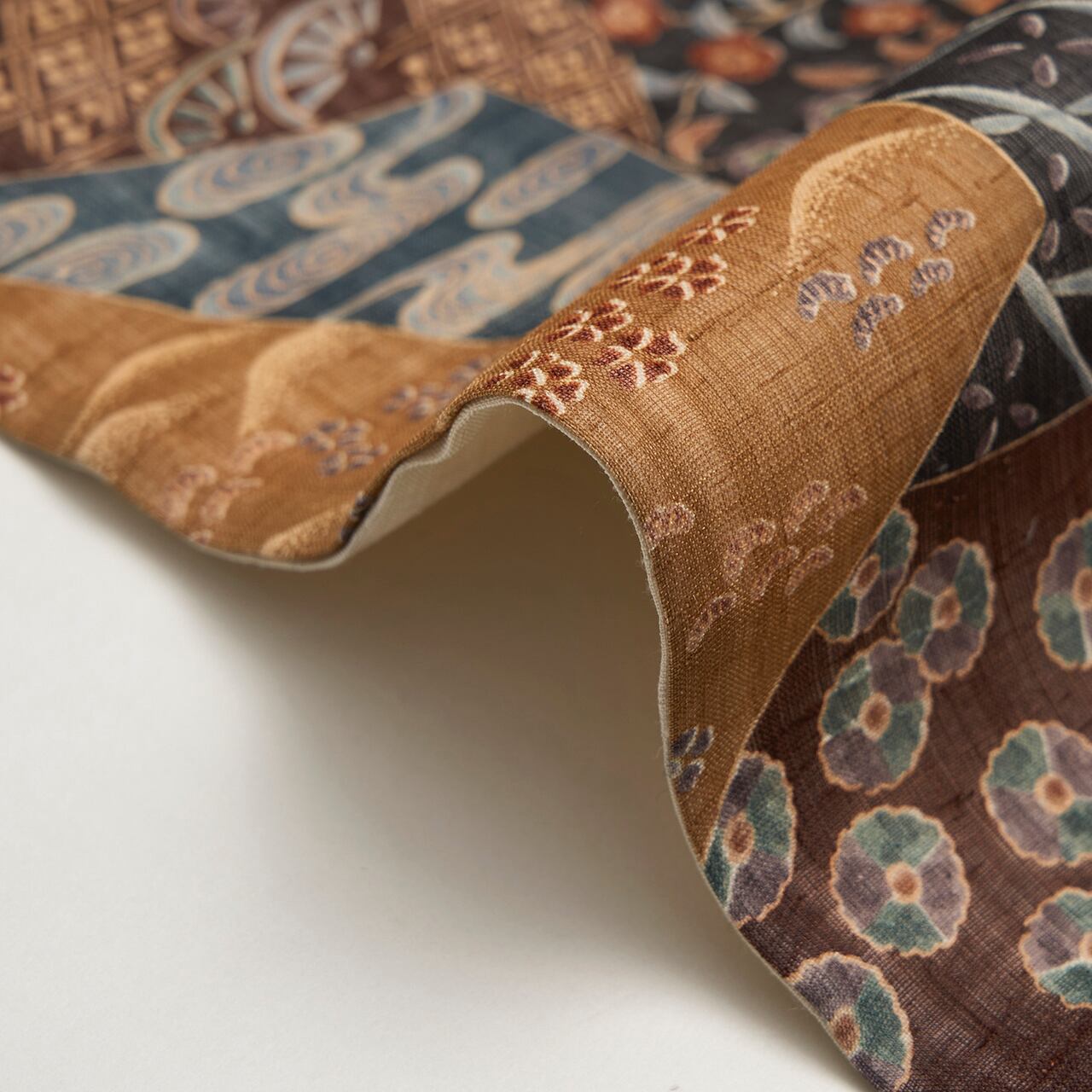 更紗調の模様は、いろいろな紬類のお着物とも合わせていただきやすいのではないかと思います。