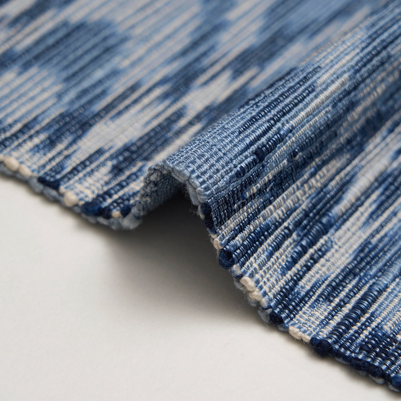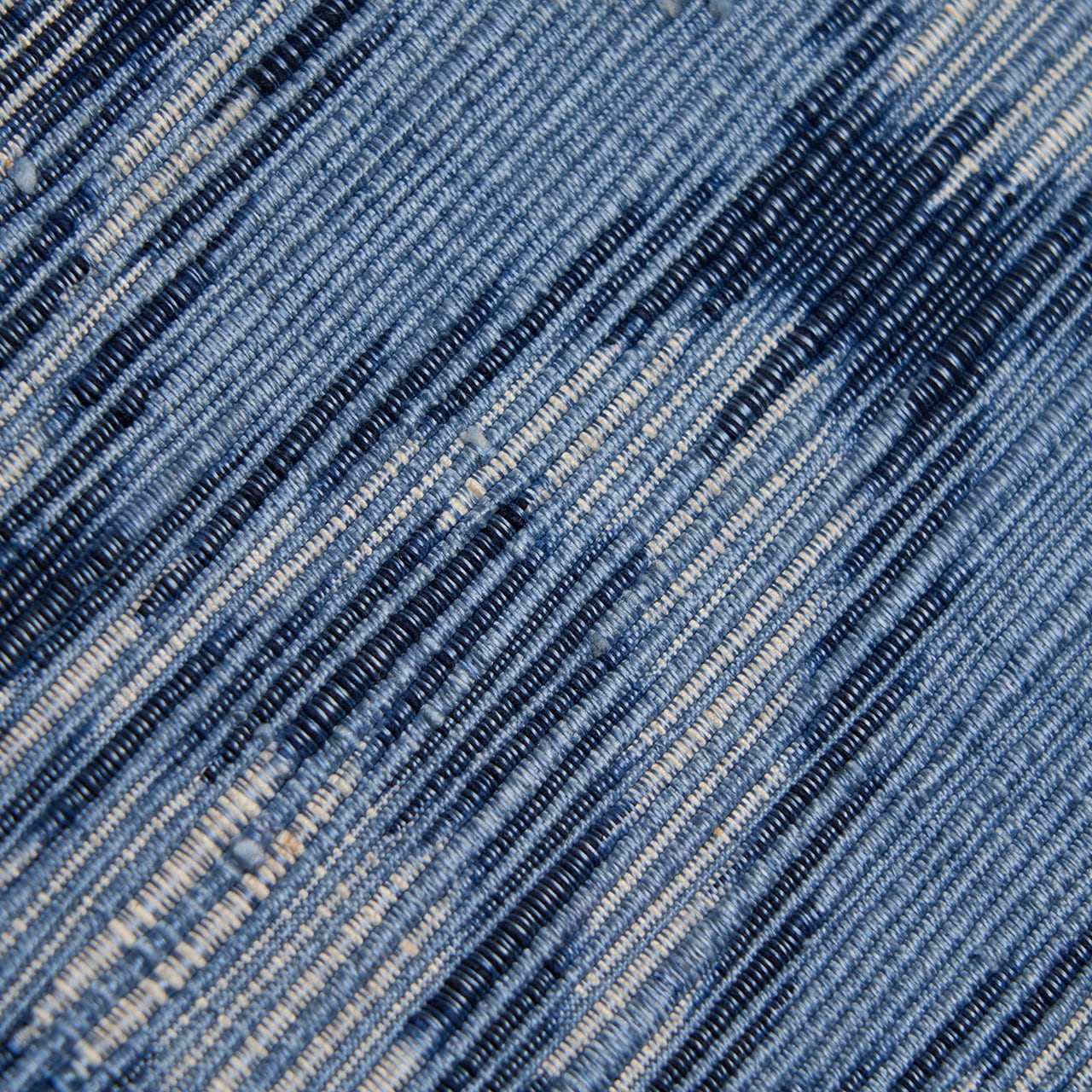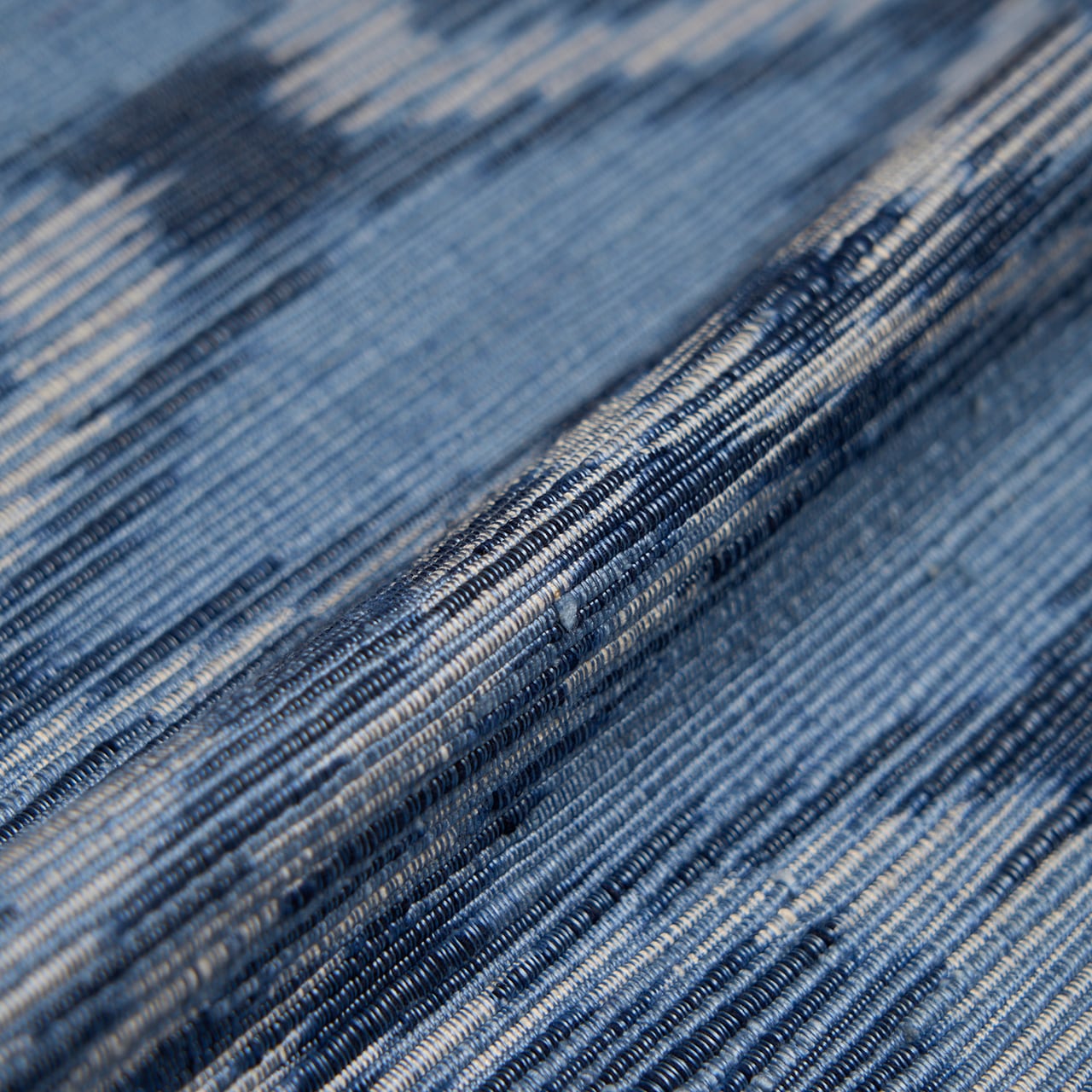 本藍染で染められているようで、濃い藍色の絣糸などにも光沢が見られ、全体的にも澄んだ綺麗な色使いとなっています。