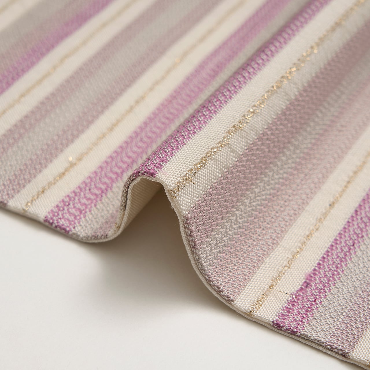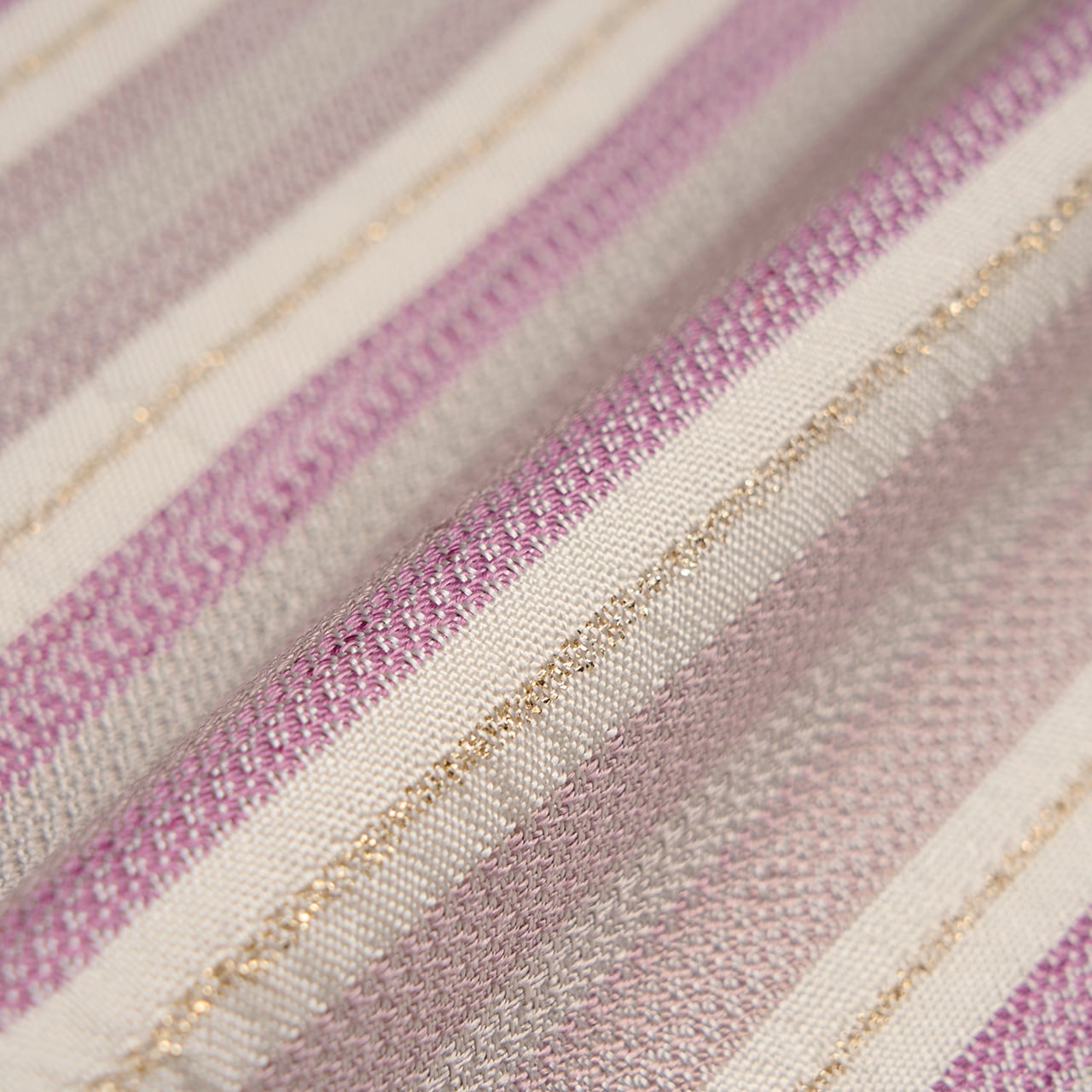 スミレのような赤紫色がとても綺麗で目を引きますし、それが淡く暈されて淡いグレーに変わっていく様もとてもお洒落な雰囲気で、魅力に溢れた帯となっています。