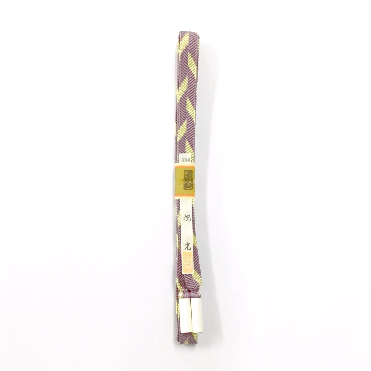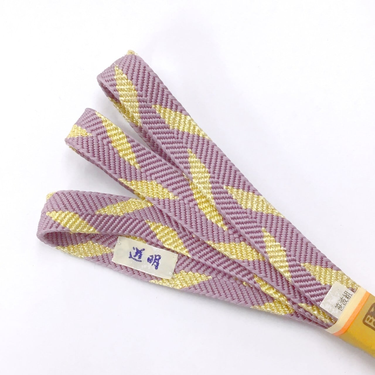 色味は薄葡萄色に、金属糸で矢羽根柄が組まれています。