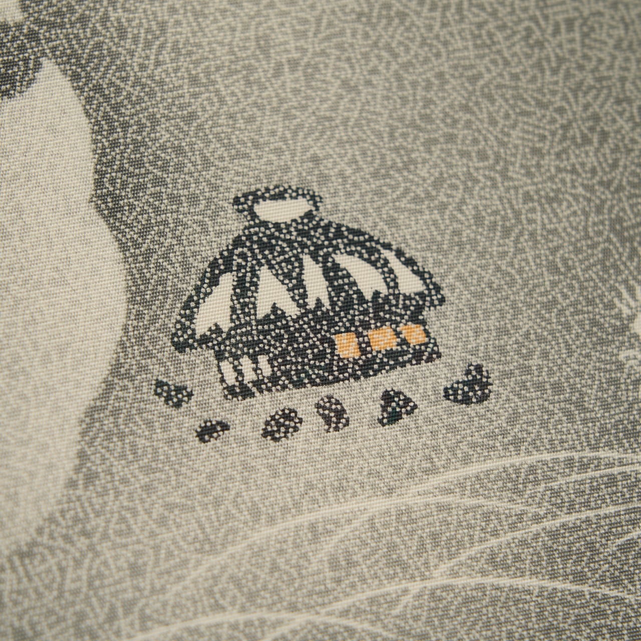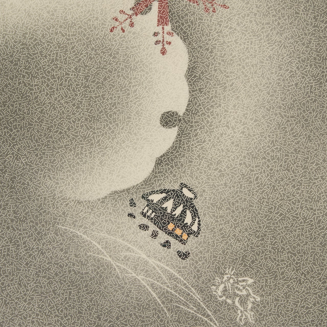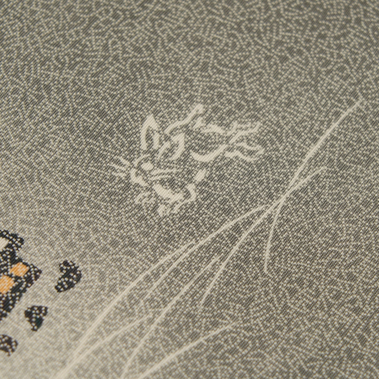 和やかでほっこりとするような図案ではありますが、江戸小紋をグラデーションで染められることや、図案に沿って染め抜かれたり、細かな模様を入れられたりしているところなど、各所に高い技術が使われた完成度の高い作品となっています。