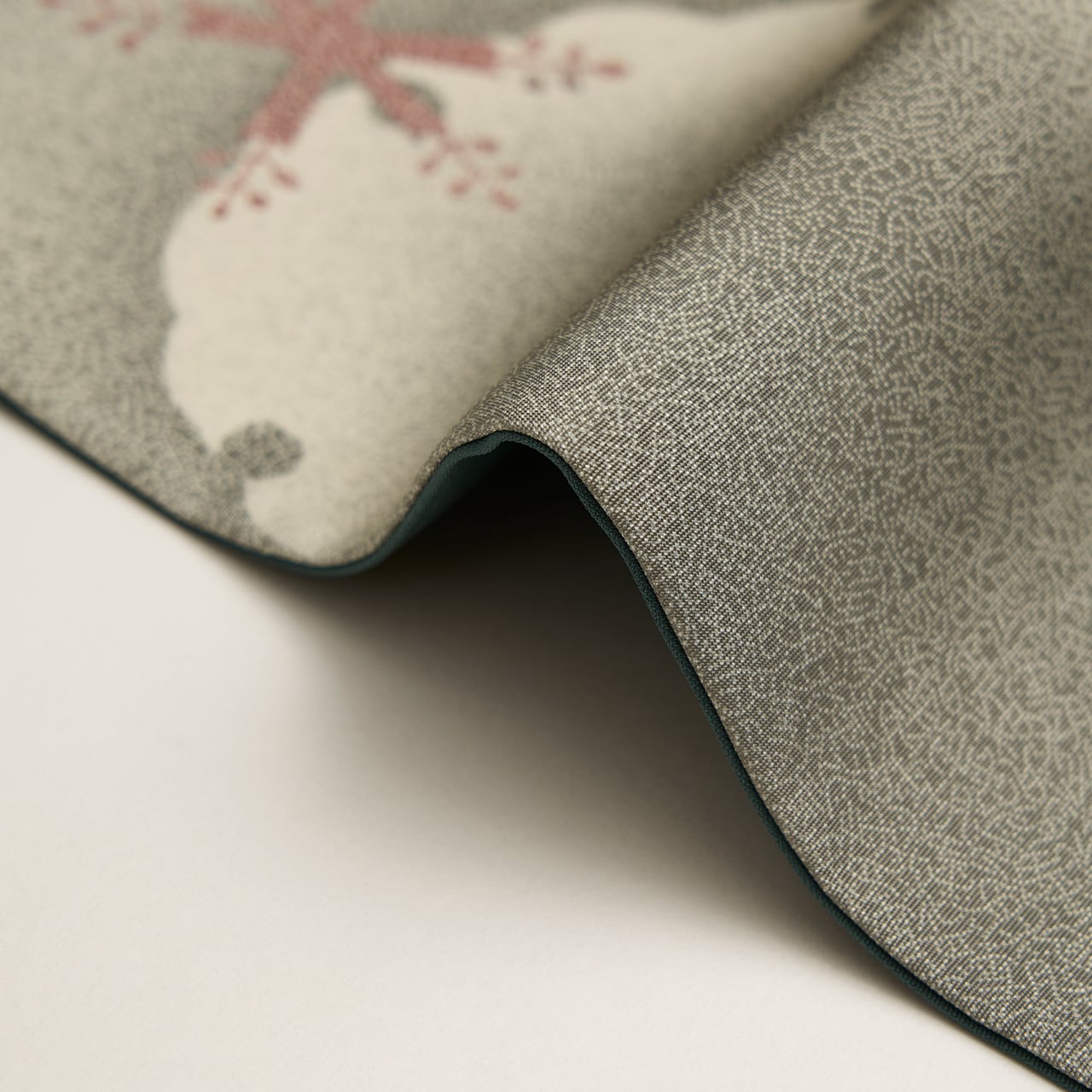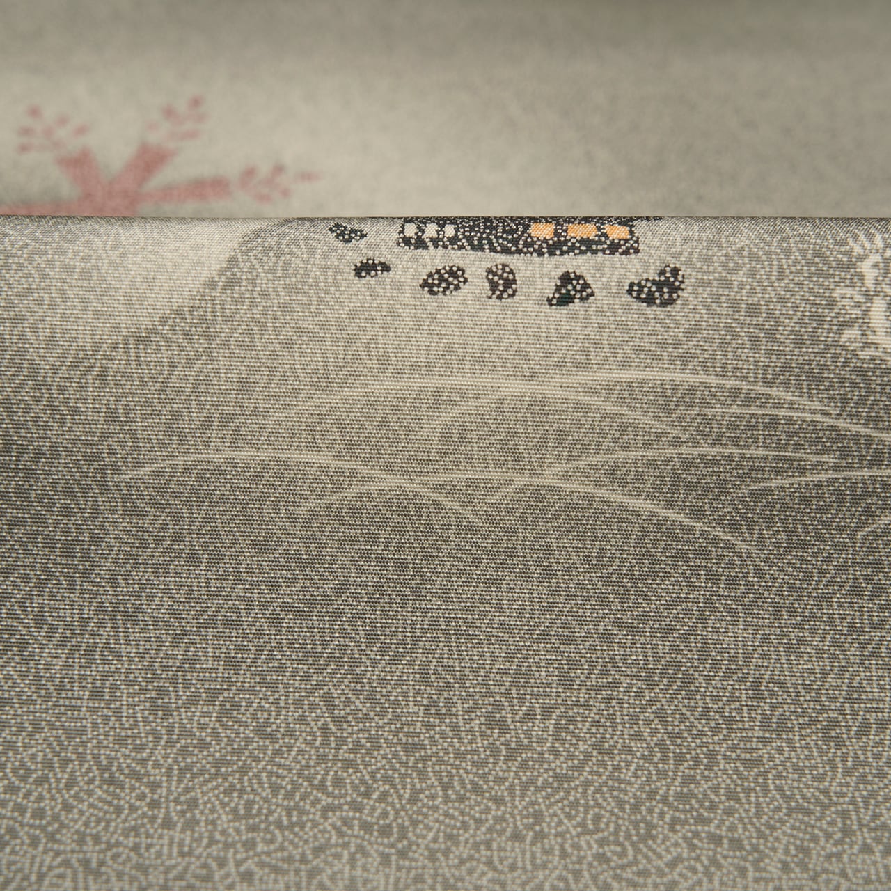 ❗❗❗手先に近い方の錆鼠色の無地の部分には、白いシュシュッとした細かい線のようなものが見られますが、濃い色に染められた塩瀬の生地によく見られるものです。