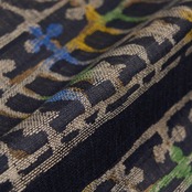 ゴシック調の幾何学文様がラフな輪郭で表現されていて、ところどころに入れられたビビットカラーが素敵なアクセントとなった、お洒落な帯です。