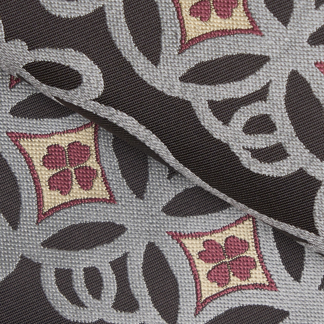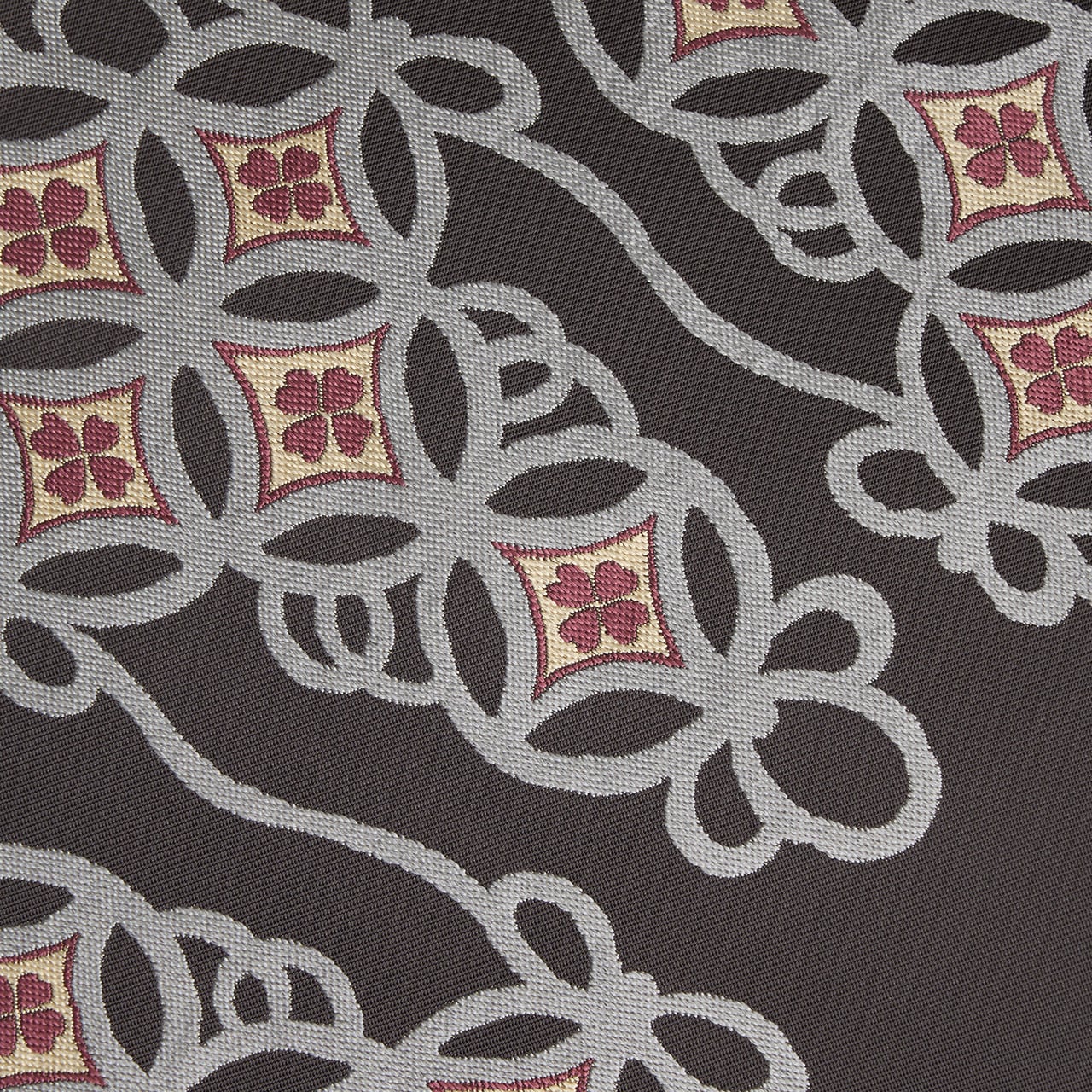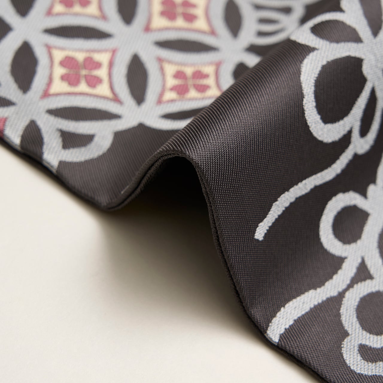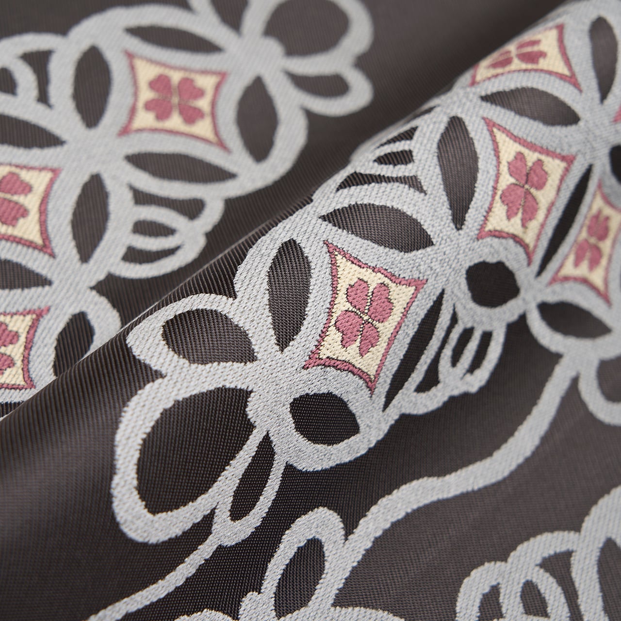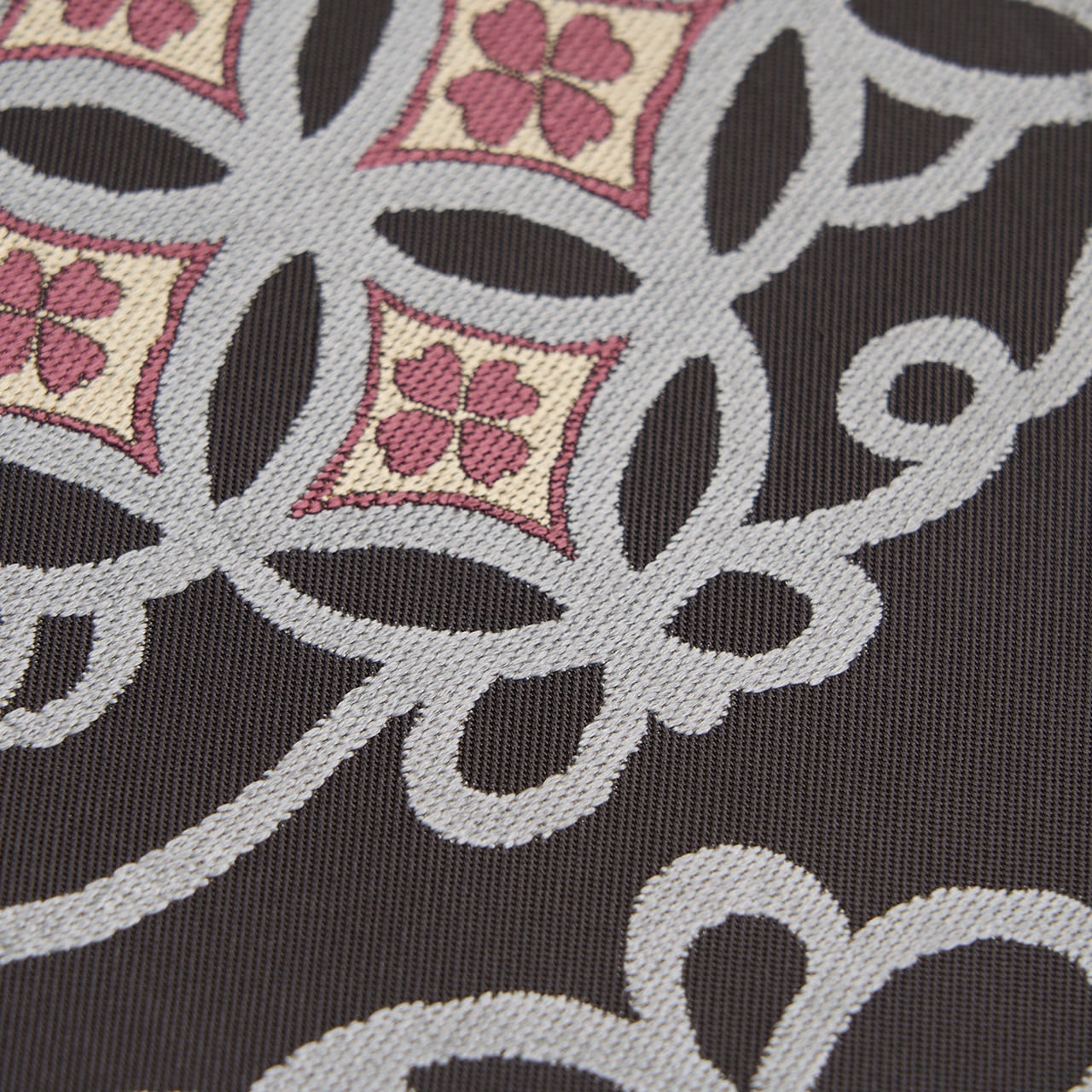 七宝文様は古くから愛されている有職文様のひとつで、重なる円が醸し出す、円満を示すような吉祥文様でもあります。
