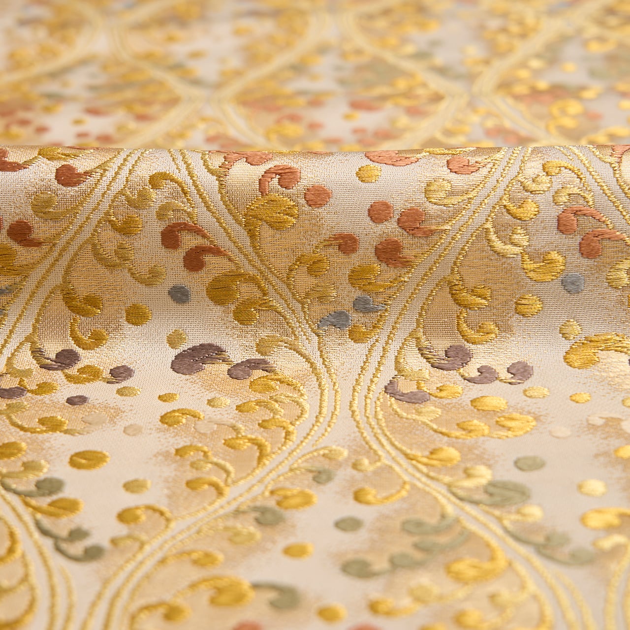 立涌文様は、シルクロードを通じて奈良時代には日本に入っていたとされ、平安時代には有職文様として、公家の装束や調度品に用いられるようになりました。