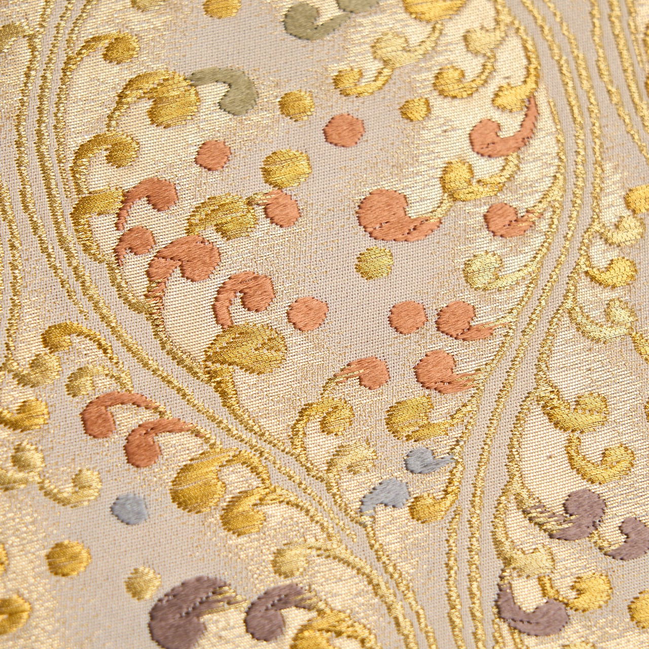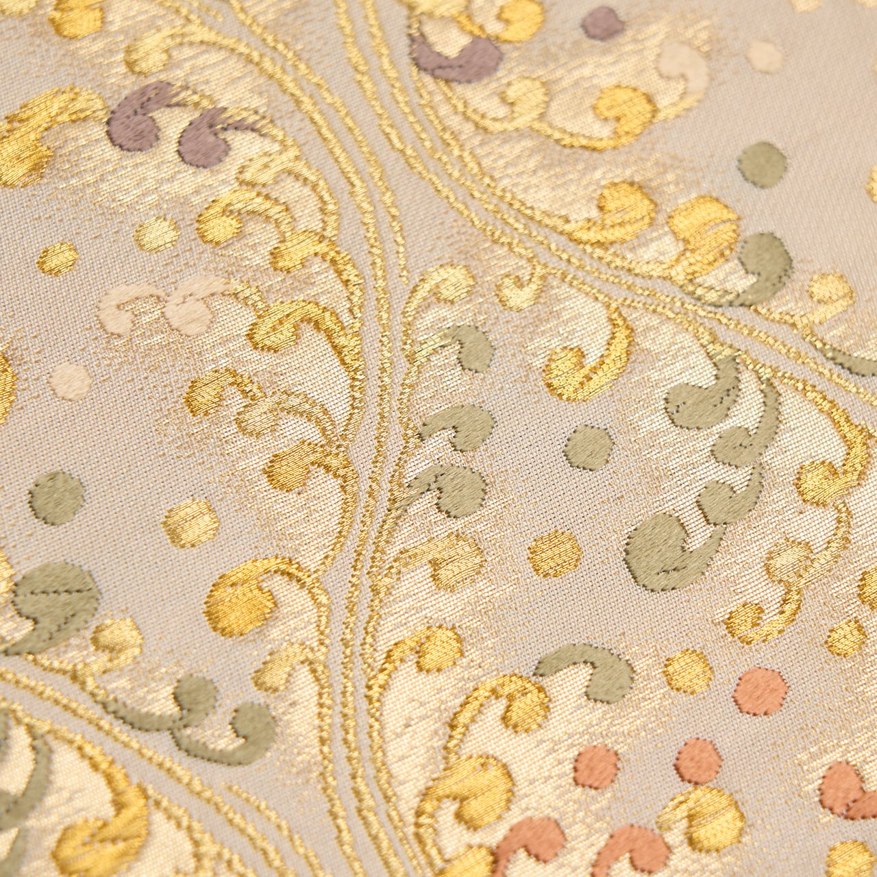 こちらの帯ですと、色留袖や訪問着のお着物、附下、地紋無地、江戸小紋のお着物などと合わせて、ご結婚式の披露宴や式典、パーティーなどにお召しになるのも良いと思います。