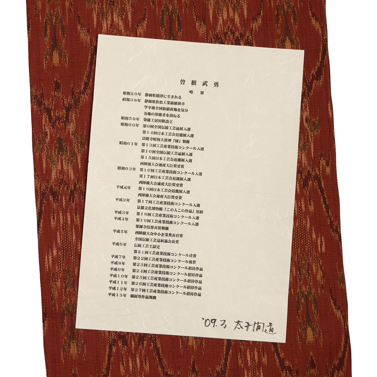 こちらは多彩な織りの技術を持っていらっしゃって、オリジナリティのあるデザインで素晴らしい作品を多く発表され、たくさんのお着物ファンに支持されている曽根武勇さんの作品です。