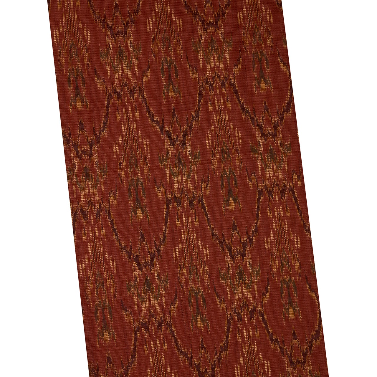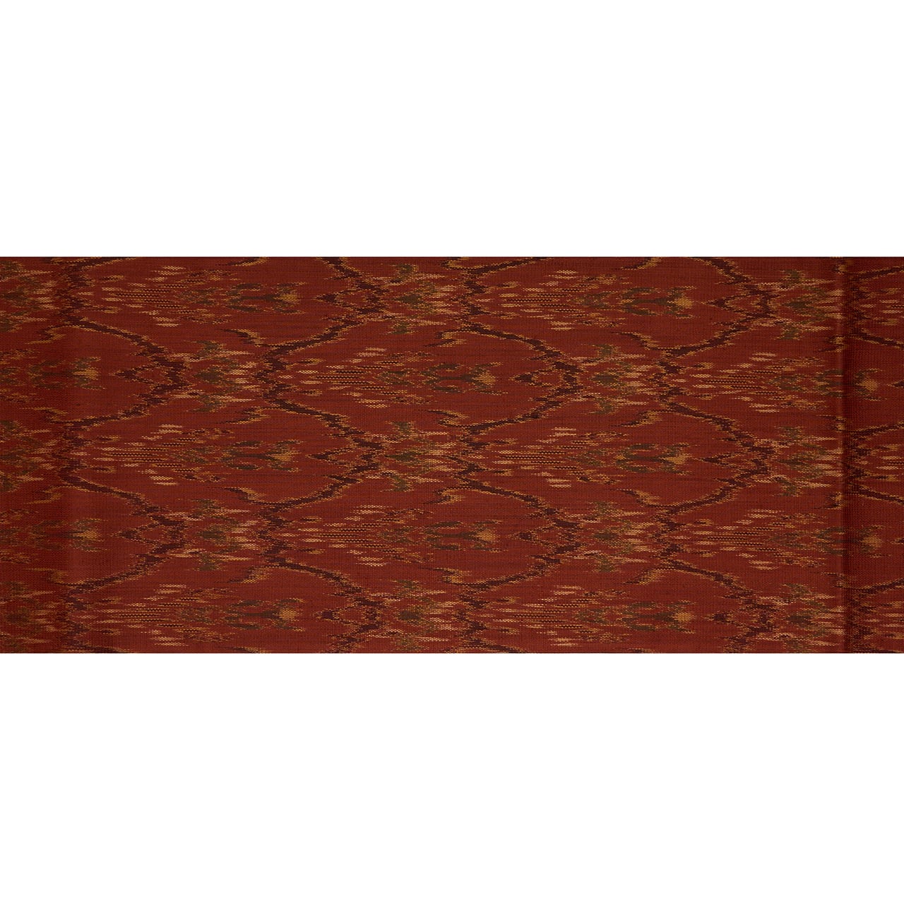経の絣糸による構成で織り出されますが、山岳や人物を造形化したものなど様々で、現在ではインドネシア産などのイカットの布などに近いものを見ることができます。