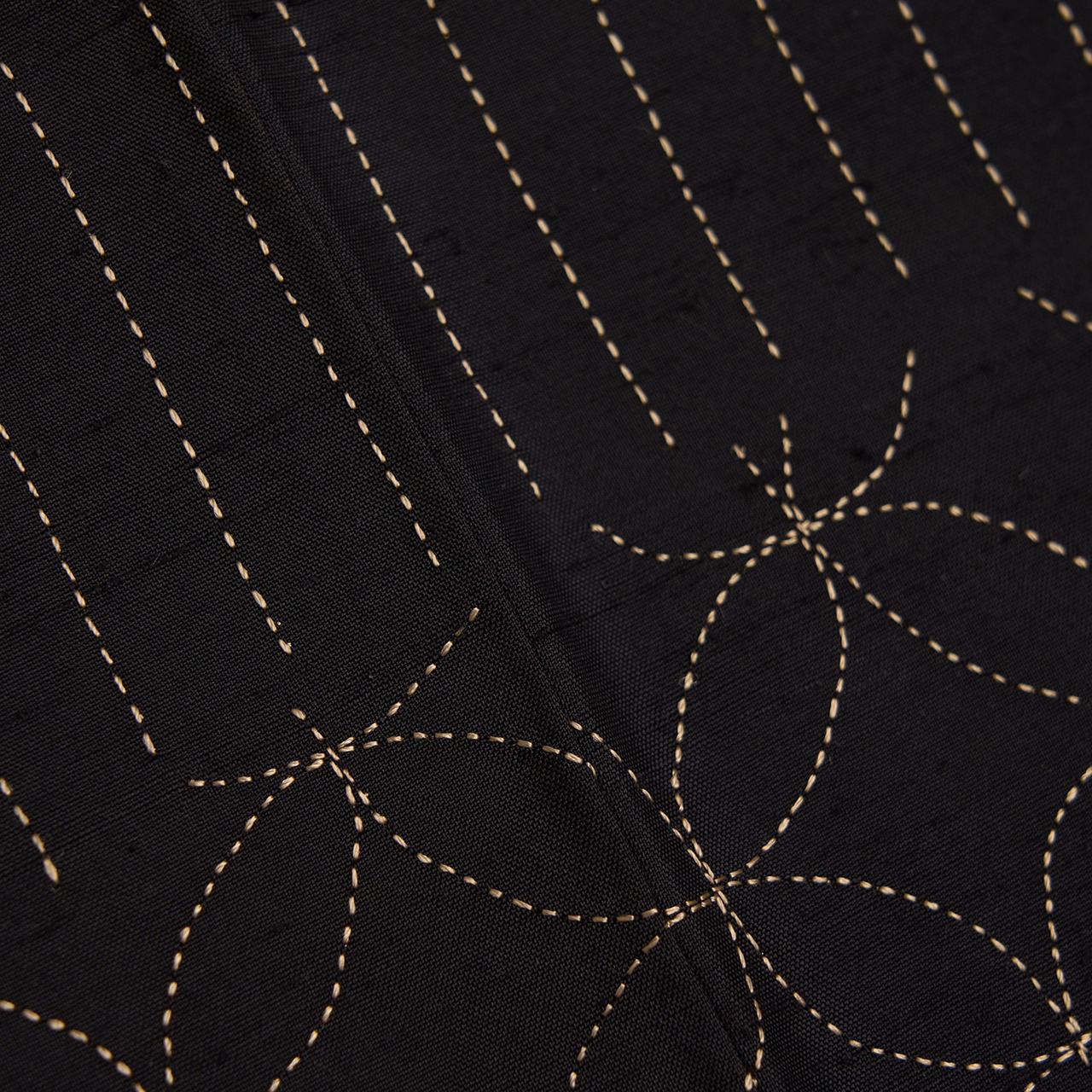 さらっとした紬の生地に絹糸で刺し子をされていることで、見た目の重厚さはありますがあまり重苦しさはなく、さらりとお召しいただけそうな雰囲気となっています。