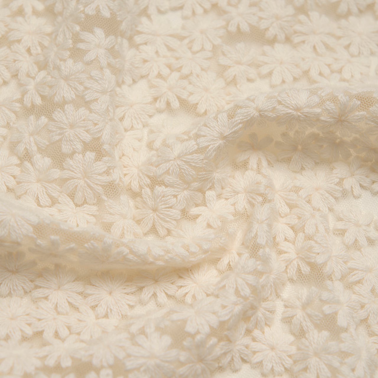 チュールレースはナイロン100%、模様のお花は綿100%の表示になっています。
