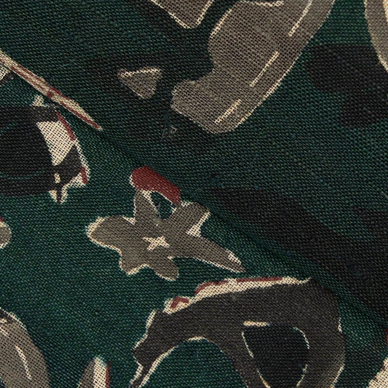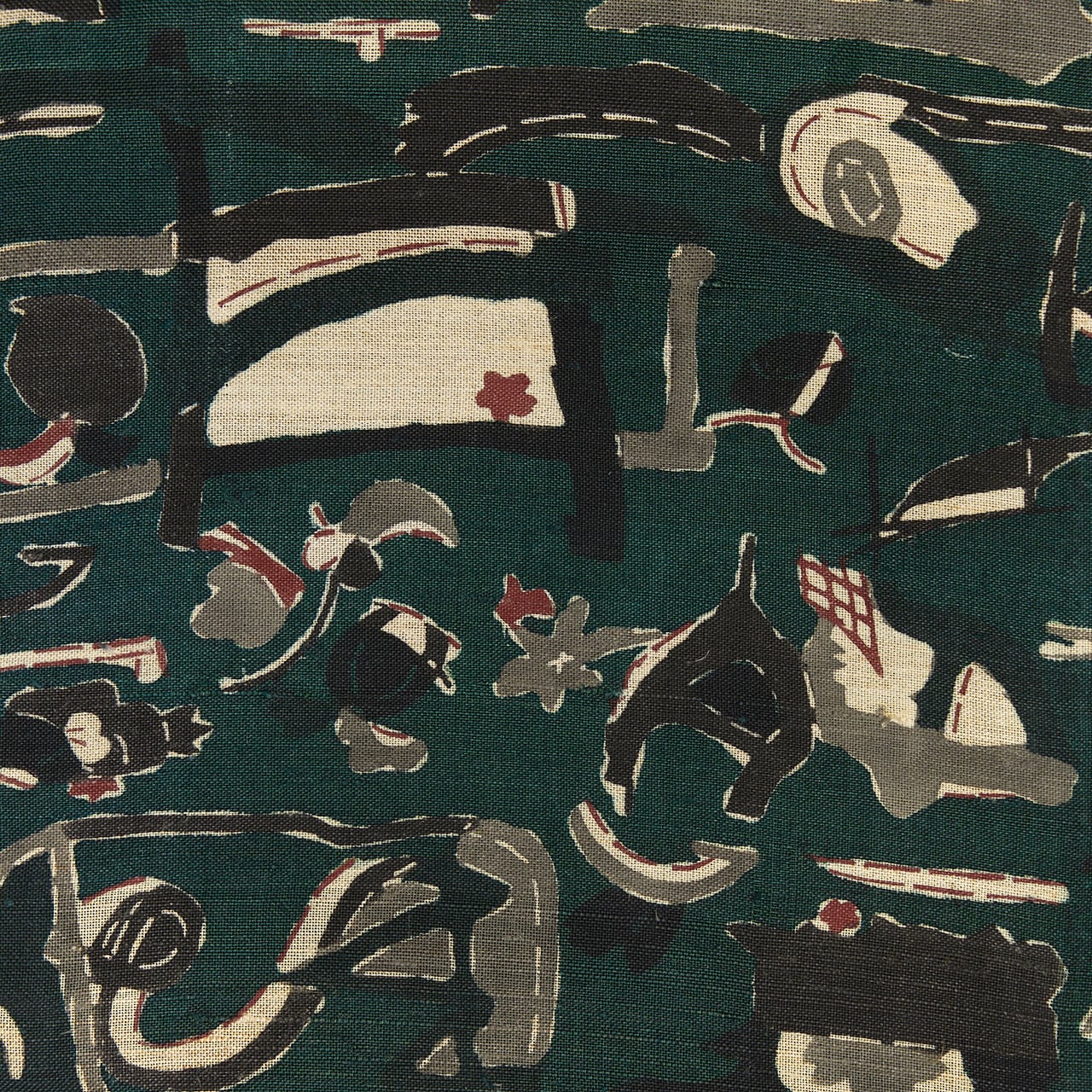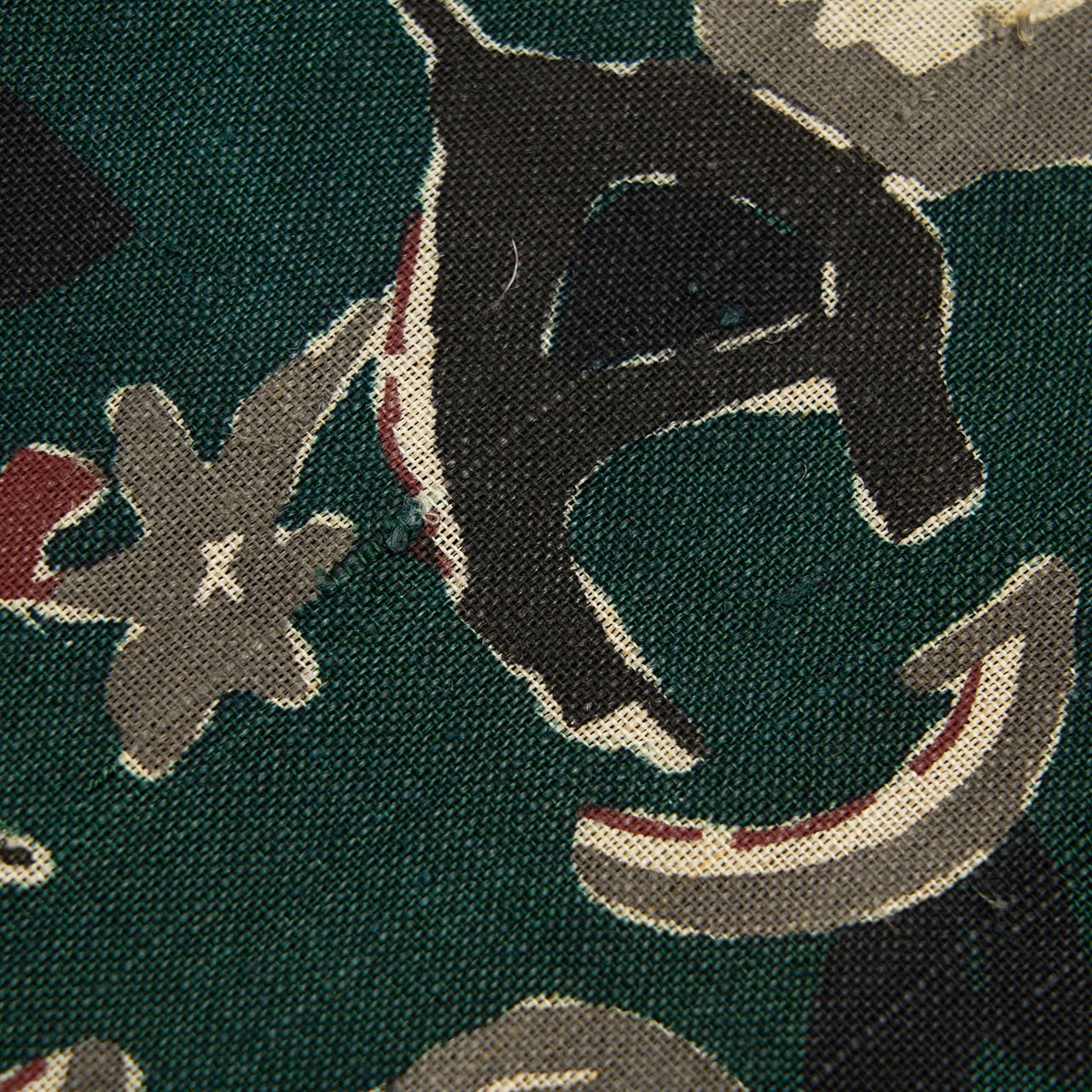 深さのある濃い緑が落ち着いた大人のお洒落さを演出してくれそうですし、型絵染ならではの楽しさのあるモチーフがまた魅力的で、素敵な着こなしをお楽しみいただけることと思える、とてもお洒落な大変おすすめの逸品です。