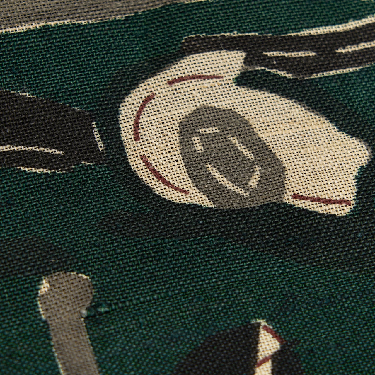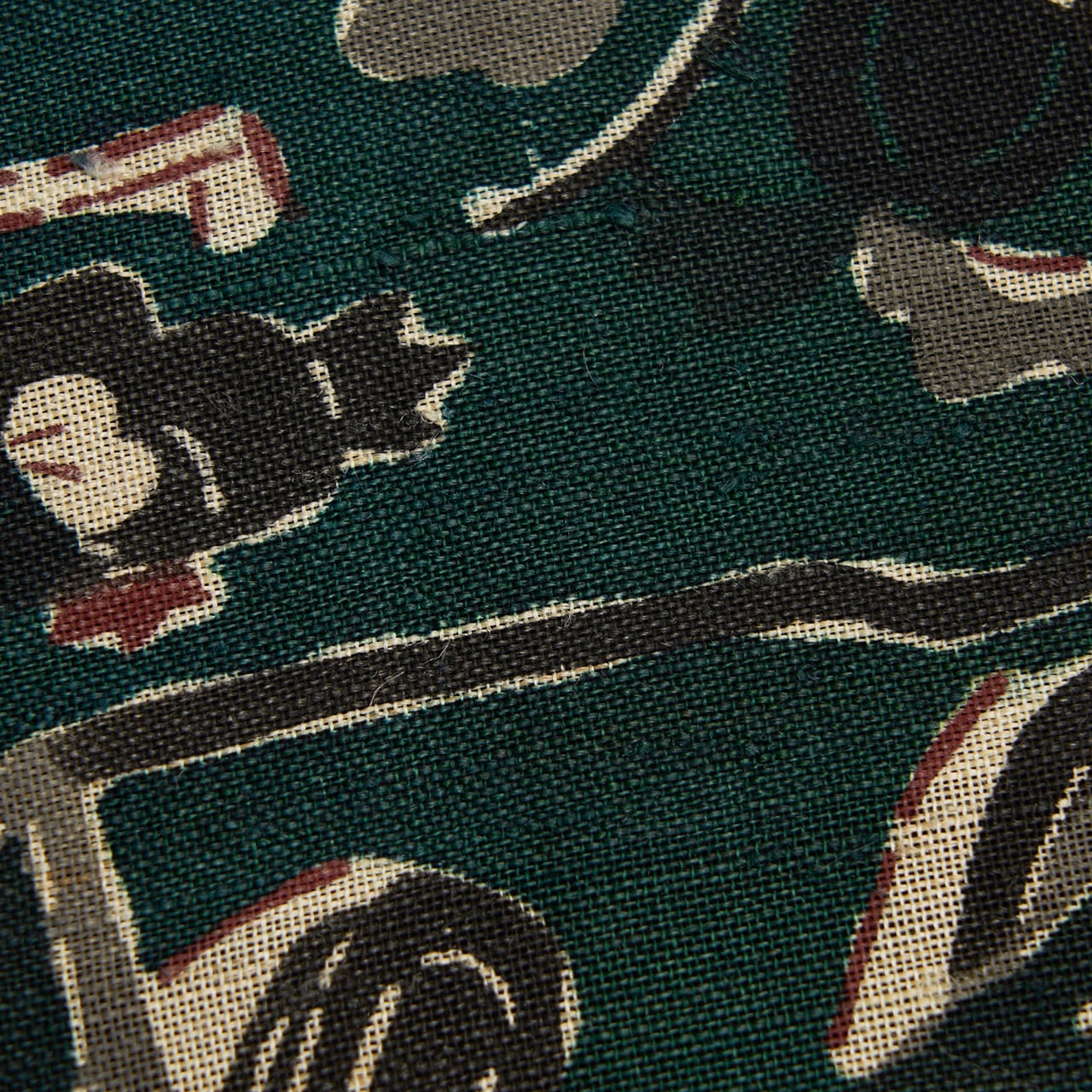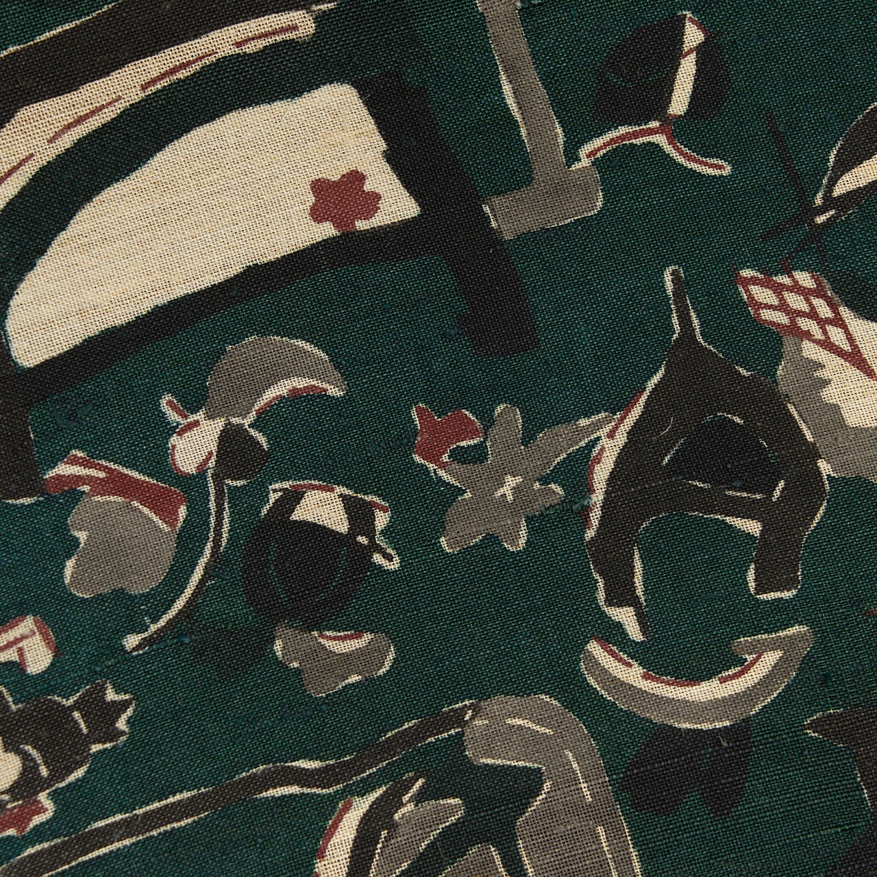 深さのある濃い緑が落ち着いた大人のお洒落さを演出してくれそうですし、型絵染ならではの楽しさのあるモチーフがまた魅力的で、素敵な着こなしをお楽しみいただけることと思える、とてもお洒落な大変おすすめの逸品です。