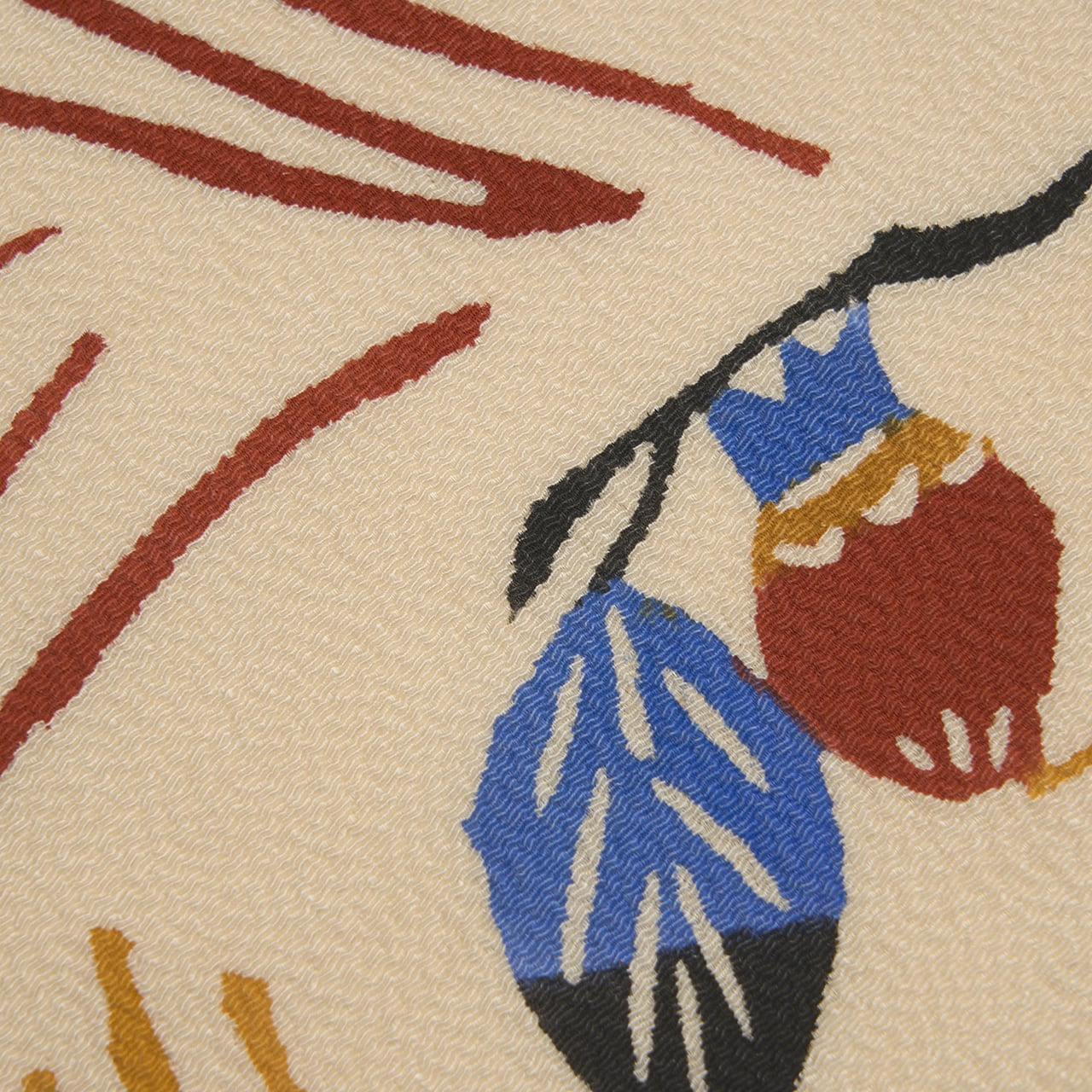 象牙色に茶系の濃淡で染められたところに、藍の濃淡がキリッと効いていて、お洒落な彩りとなっています。